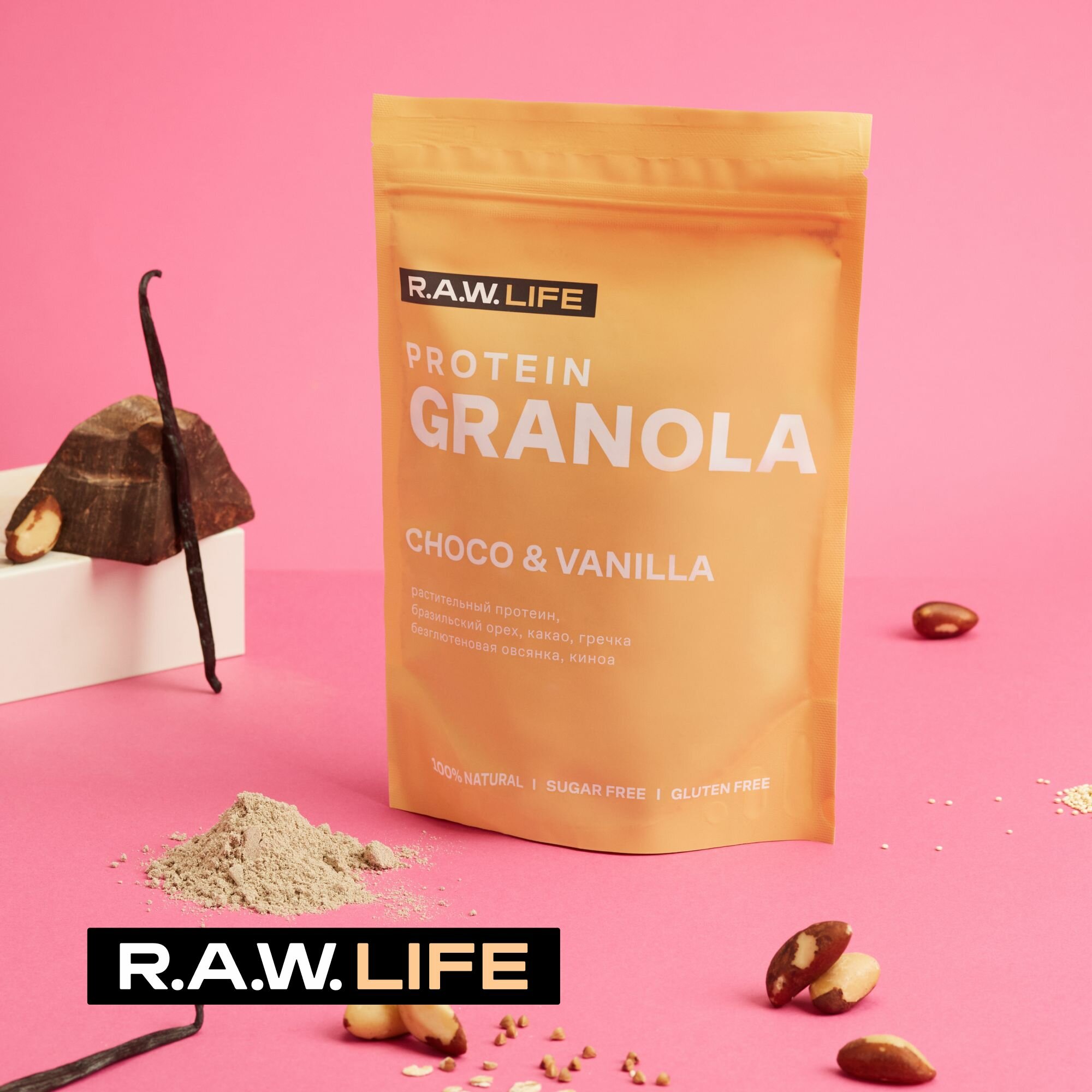 Купить Гранола протеиновая R.A.W. LIFE без сахара, без глютена / Натуральный готовый веганский продукт для здорового питания / Шоколад-Ваниль 220гр