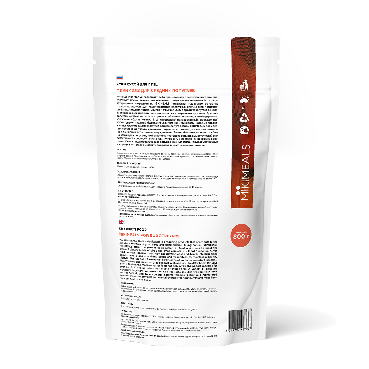 Корм Микимилс (Mikimeals) для средних попугаев 800 г интересное: