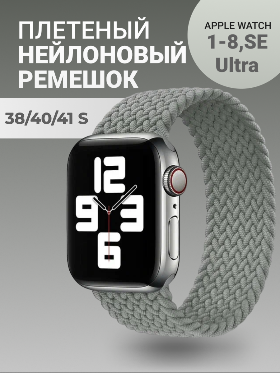 СохранитьНейлоновый ремешок для Apple Watch Series 1-9, SE, SE 2 и Ultra, Ultra 2; смарт часов 38 mm / 40 mm / 41 mm; размер S (135 mm); светло-серый интересное: