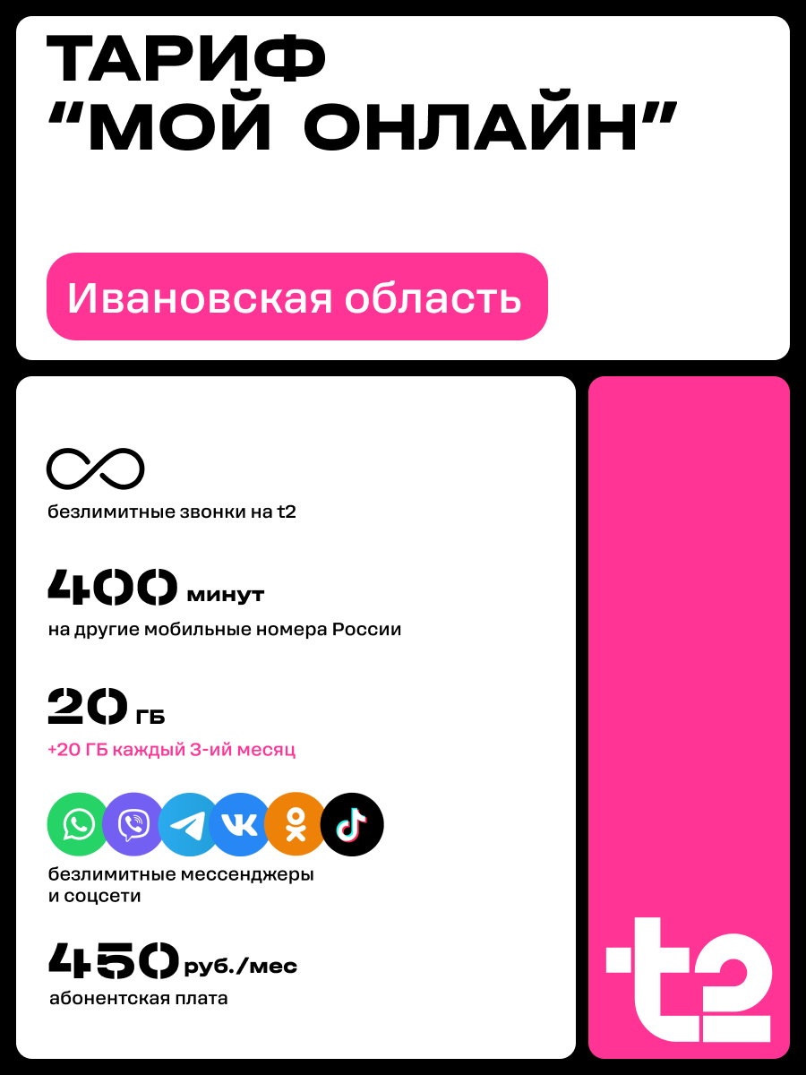 Sim-карта t2 для Ивановской области, баланс 300 рублей интересное: