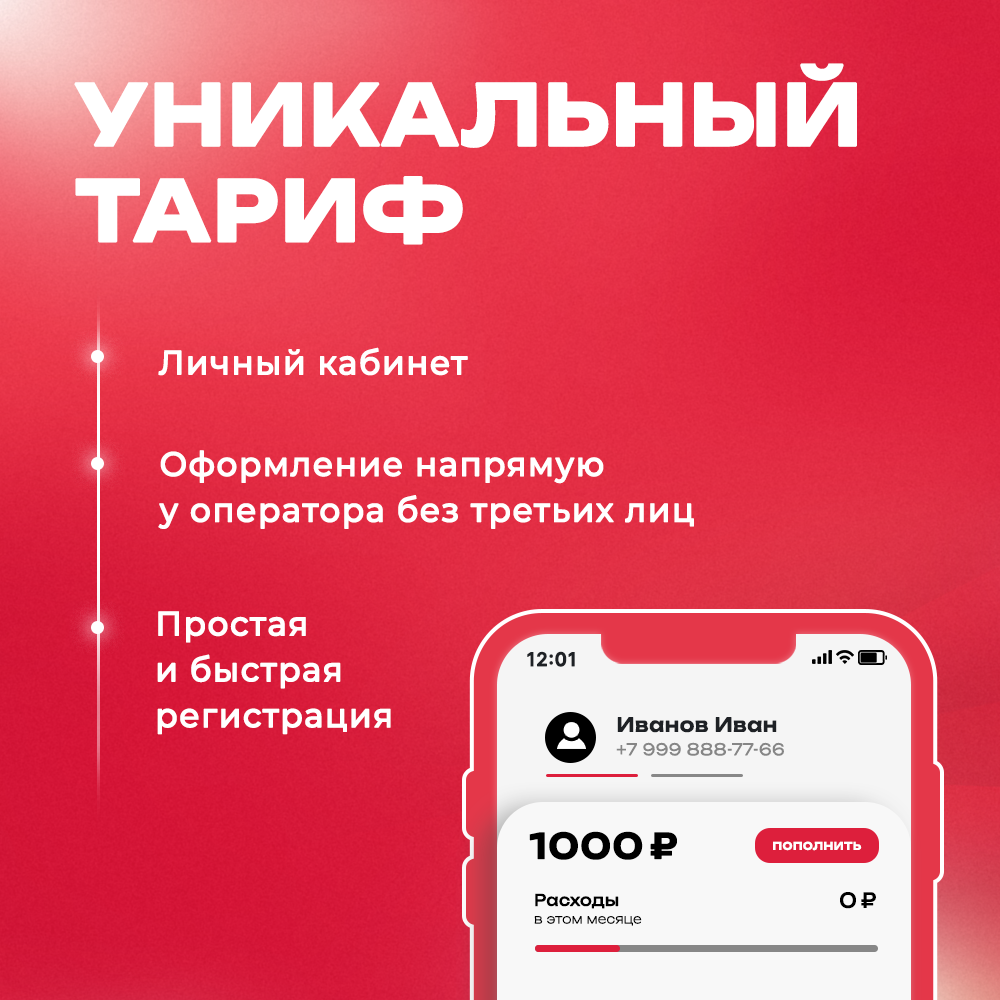SIM-карта Безлимит по РФ с Wi Fi, для всех устройств, 990 р / в месяц/ сим карта