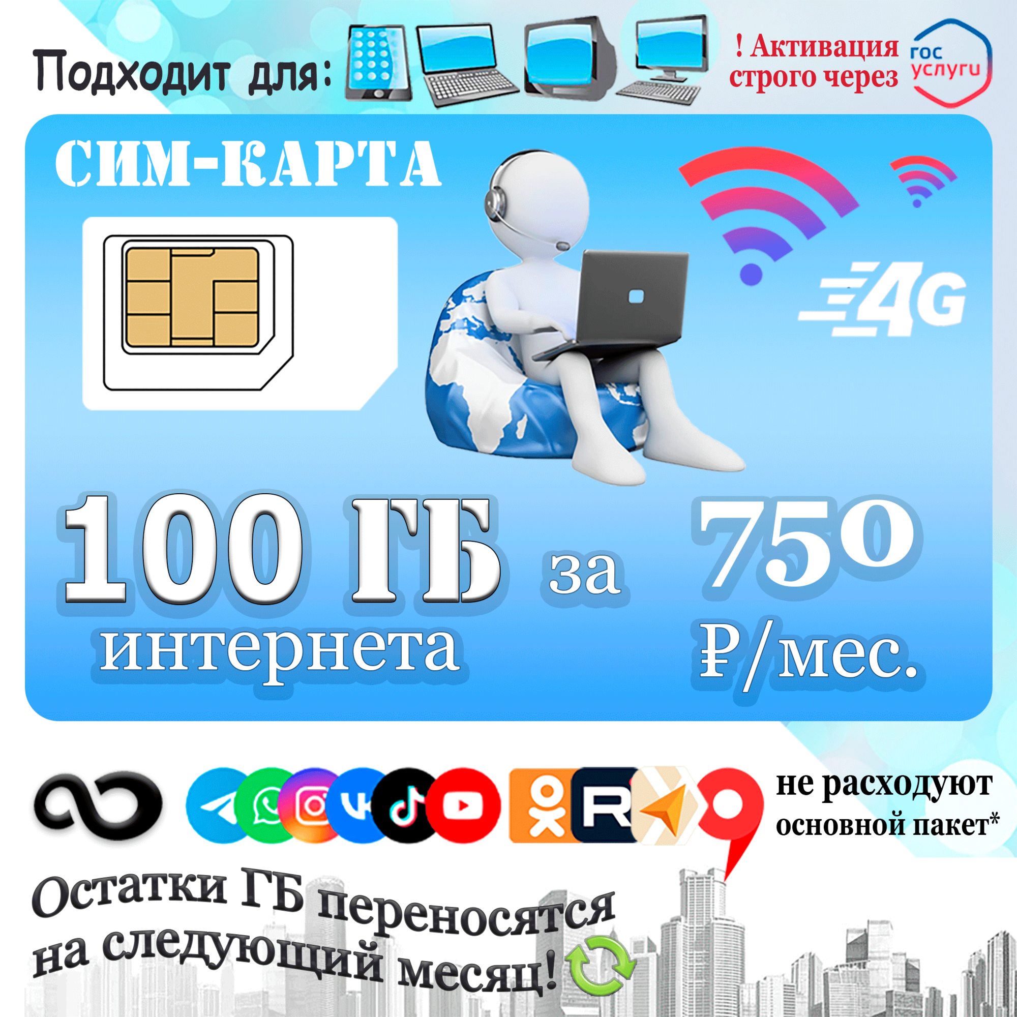 Купить Сим-карта для модемов и роутеров с 100 Гб интернета, со звонками и 60 SMS
