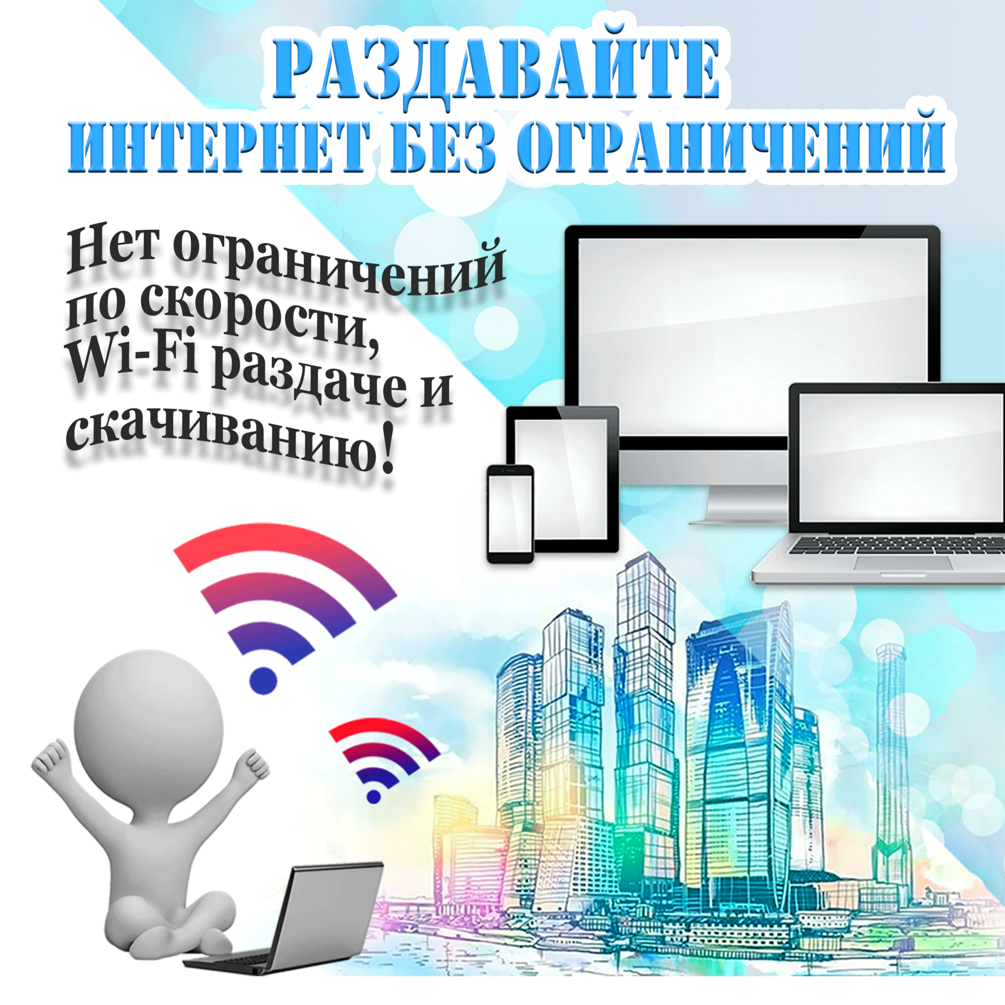 SIM-карта Безлимит по РФ с Wi Fi, для всех устройств, 990 р / в месяц/ сим карта