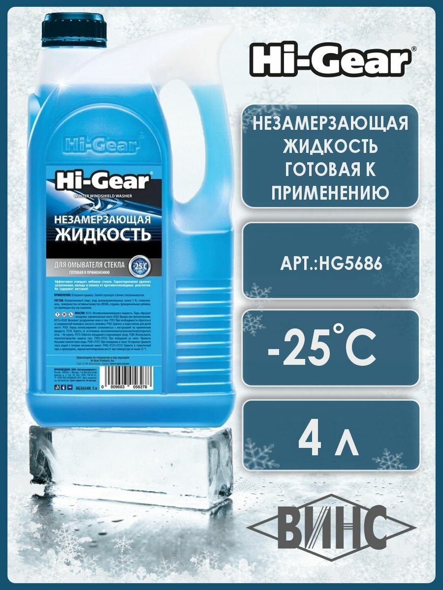 Жидкость Омывателя Незамерзающая -25C Hi-Gear Инновационная Готовая 4 Л Hg5686 Hi-Gear арт. HG5686 интересное:
