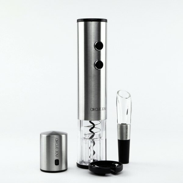 | Дополнительная информация | в комплекте: электрический штопор - 1 шт., нож для фольги - 1 шт., аэратор - 1 шт., пробка для вина - 2 шт., подставка; источник питания: батарейки АА (4 шт.); скорость открытия бутылки: 8 сек; совместимость для пробок диаметром 20-25 мм, бутылки наружным диаметром не более 35 мм |