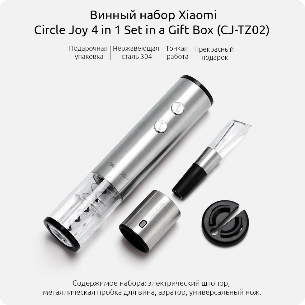Винный набор 5 в 1 Xiaomi Circle Joy Electric Wine Opener Gift Set (CJ-TZ08), В наборе: электроштопор, нож для фольги, 2 вакуумные пробки, аэратор и подставка