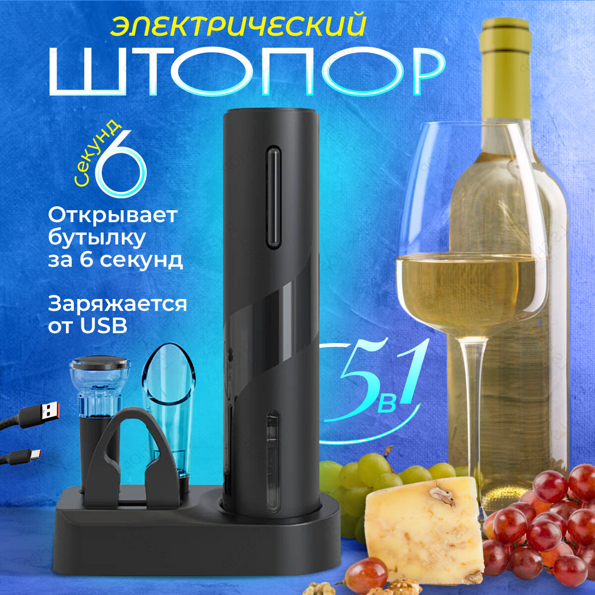 Электроштопор автоматический для вина 5 в 1