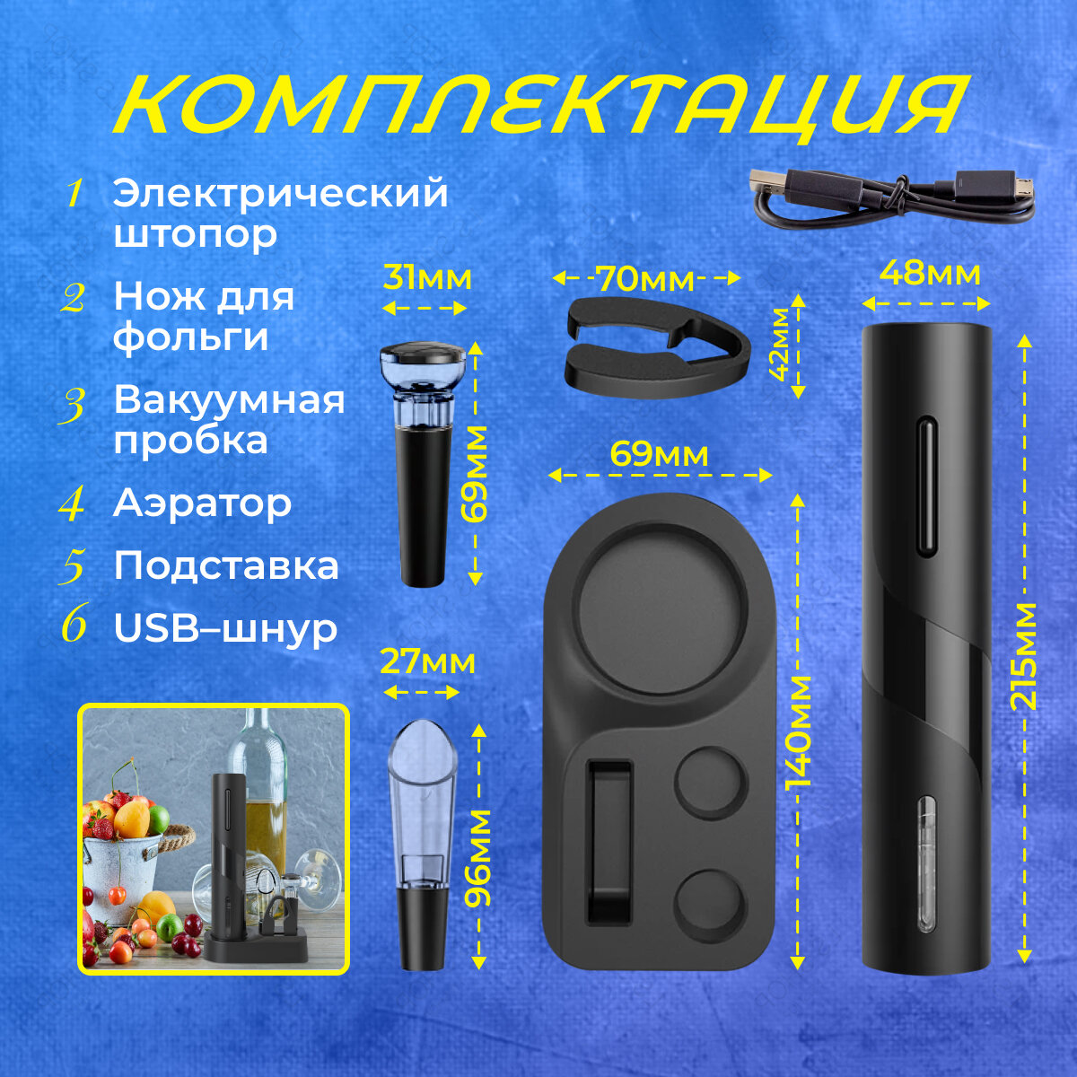 | Вид штопора | электрический |