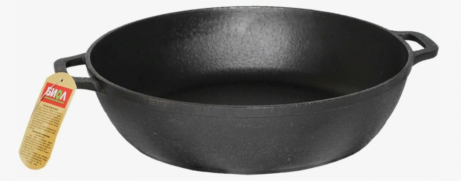 Сковорода WOK чугунная Гардарика, диаметр 24 см с ручкой, экологически чистый материал