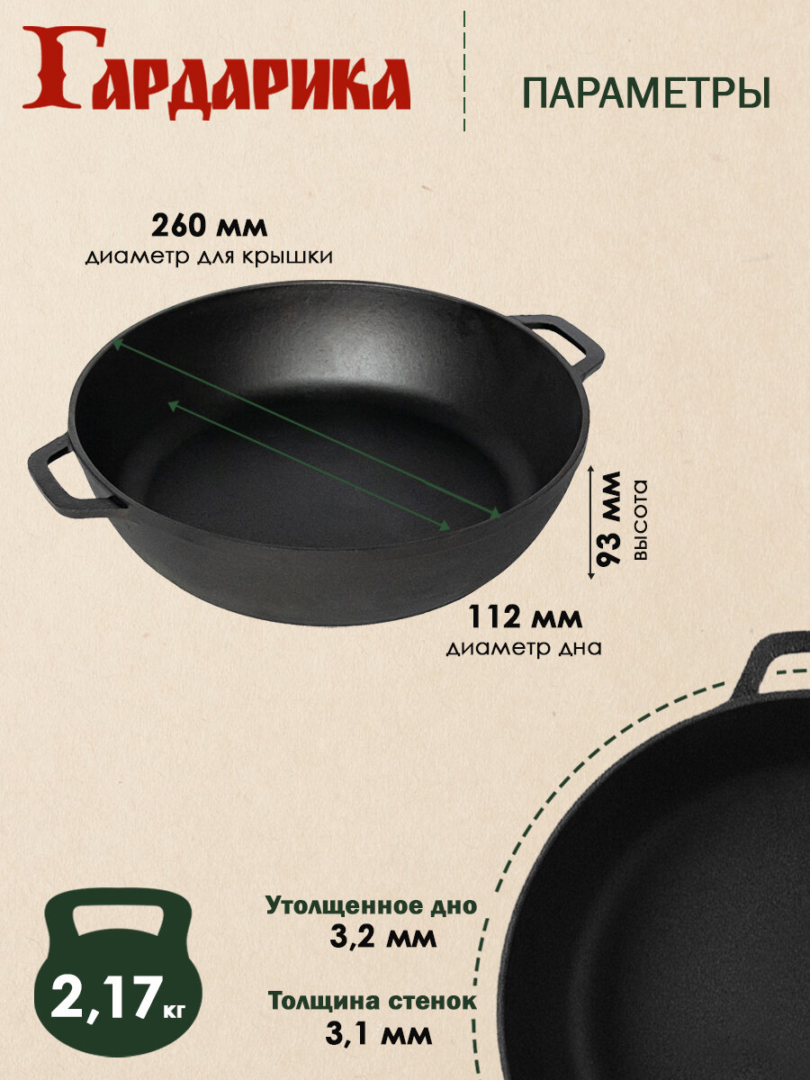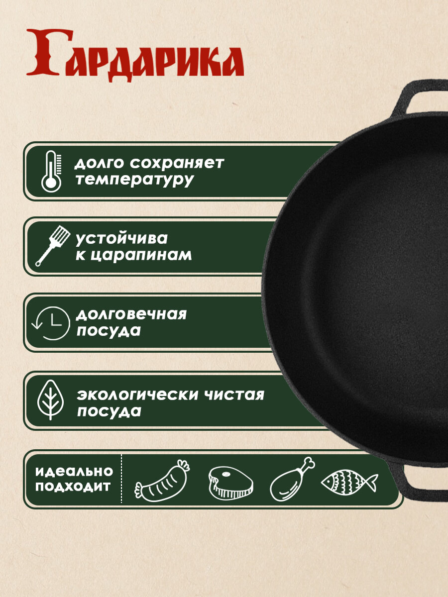 СохранитьЖаровня Гардарика 1826 чугунная с двумя литыми ручками, 26см интересное: