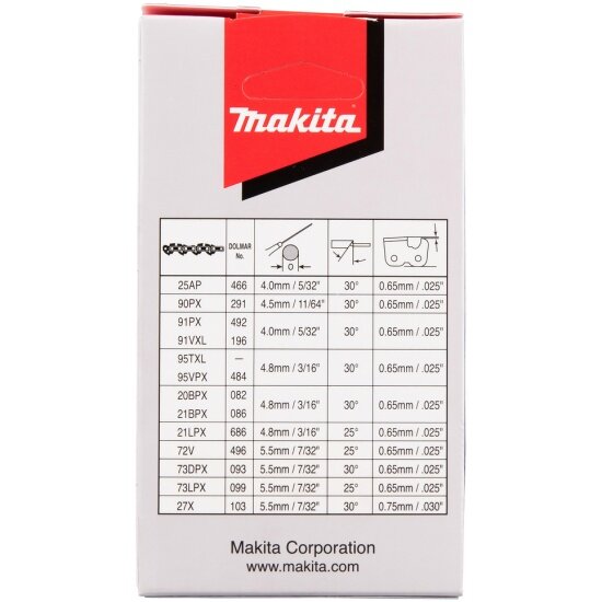 | Дополнительная информация | Цепь Makita 196213-0 16" 3/8" 1.3 мм 56 звен. |