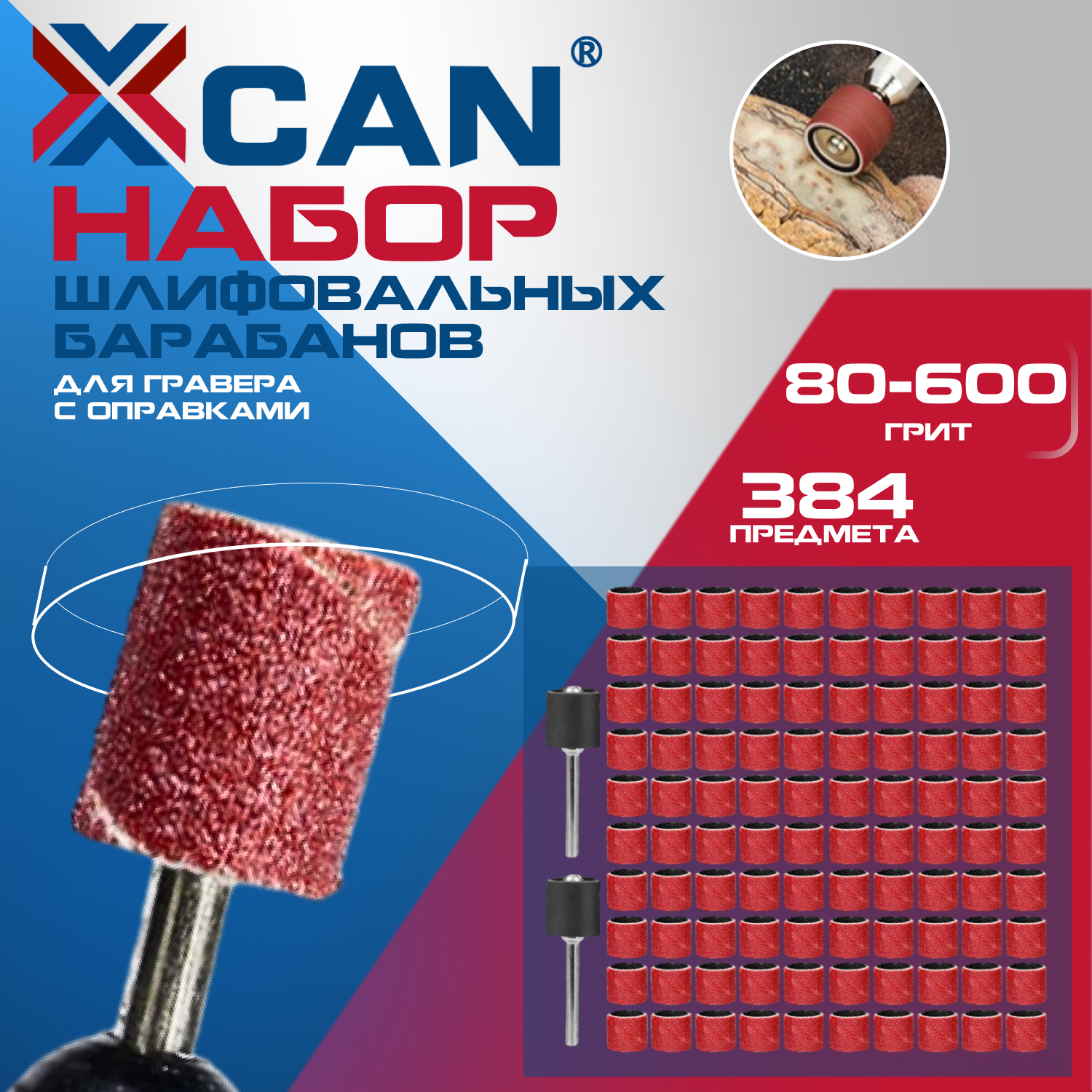 Набор шлифовальных барабанов для гравера XCAN в футляре, 384 шт. интересное: