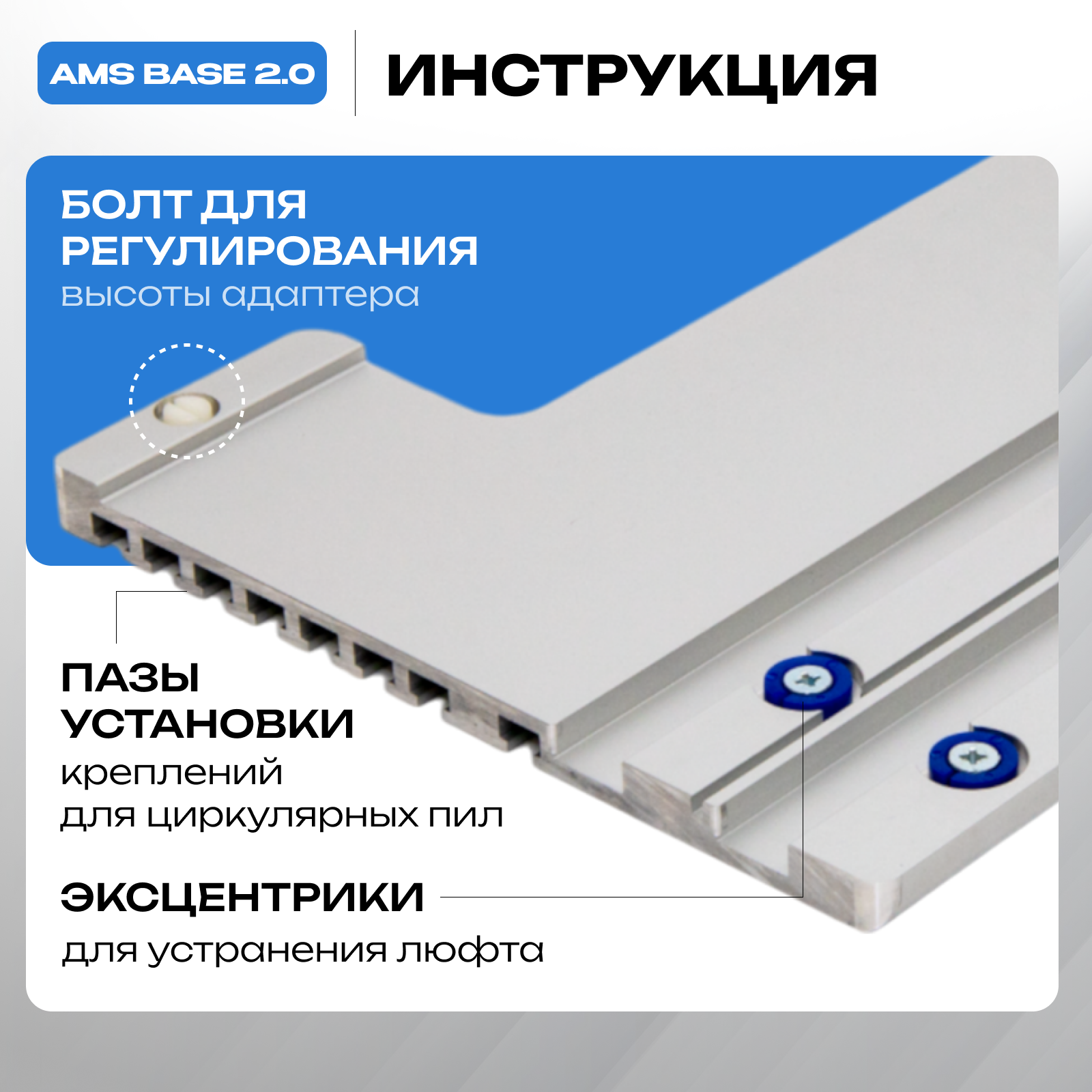Адаптер для пил AMS BASE 2.0 к шинам Makita, Festool, Metabo, Line, Bosch 140мм, Dewalt, Hilti, Зубр 27см