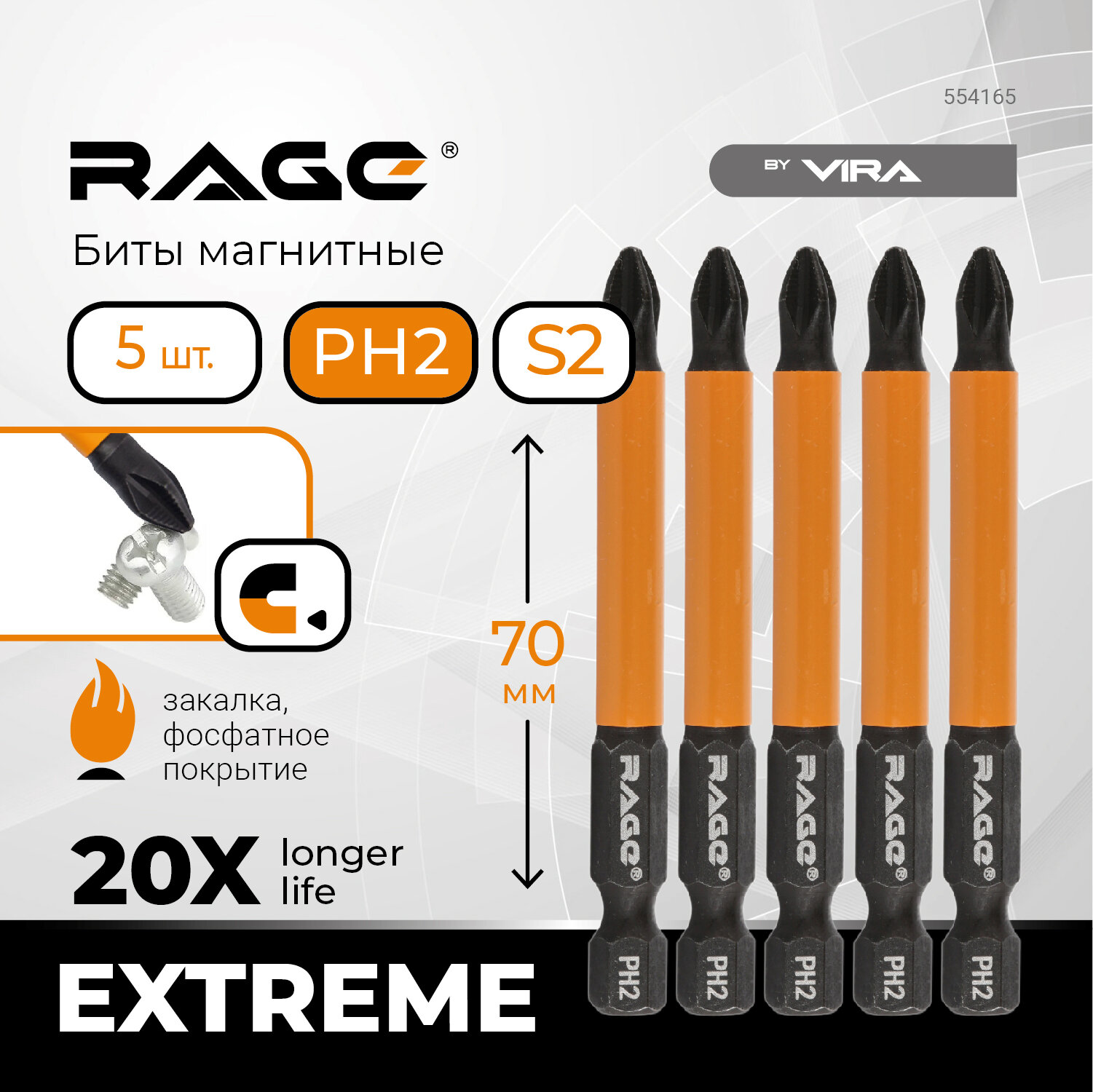 RAGE by VIRA Биты магнитные s2 ph2x70 мм 5шт 554165 интересное: