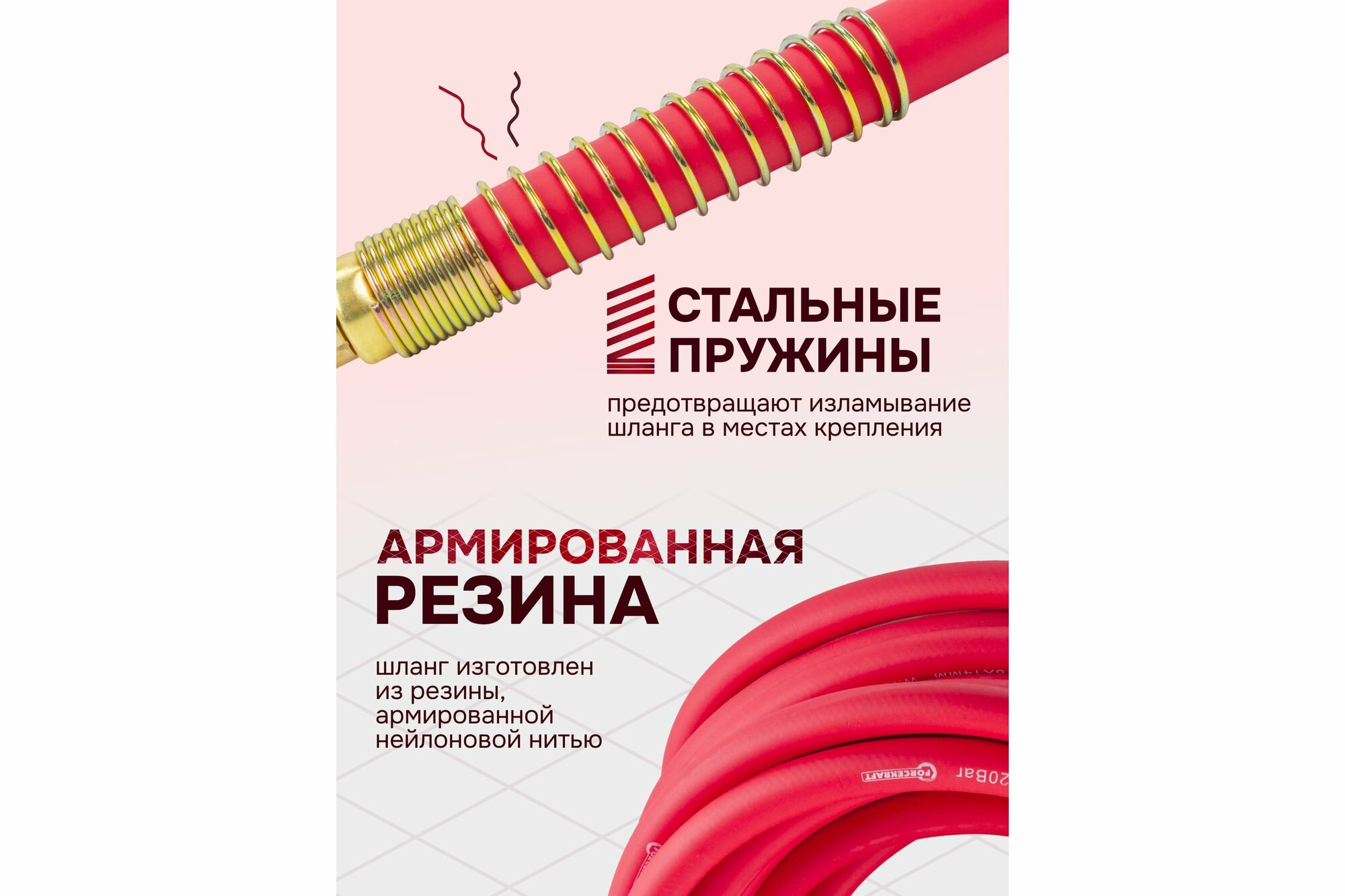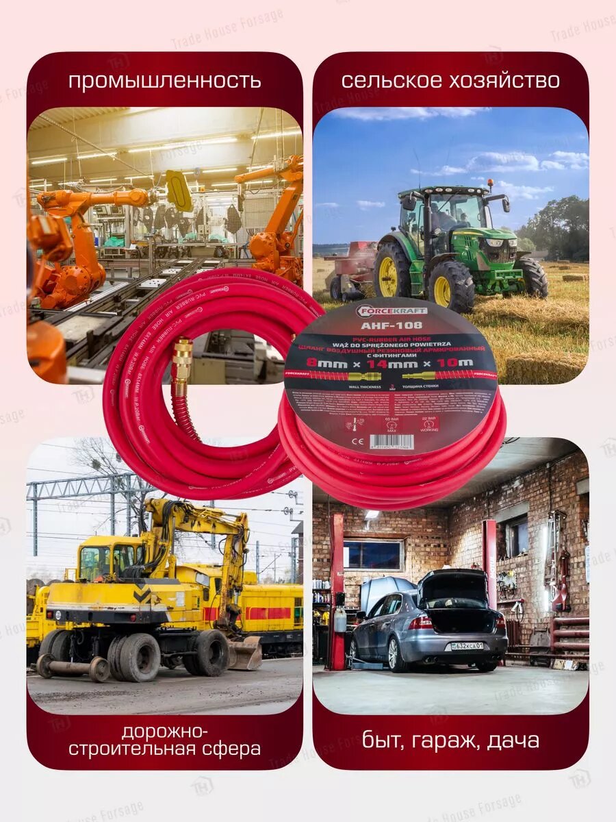 СохранитьШланг FORCEKRAFT резиновый воздушный армированный с фитингами 8/14мм - длина 10м интересное: