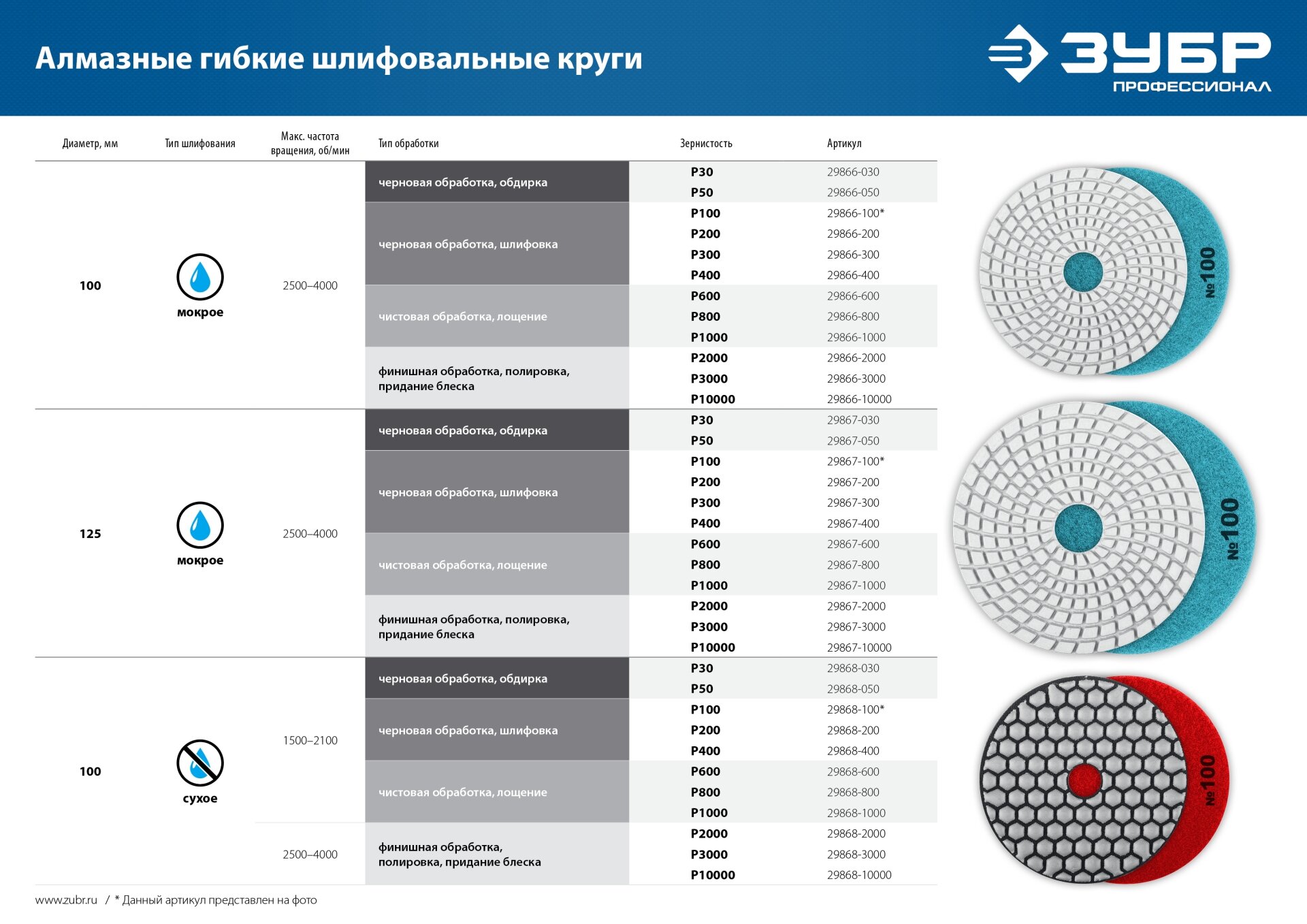 ЗУБР 100мм №200 алмазный гибкий шлифовальный круг (Черепашка) для мокрого шлифования (29866-200) интересное: