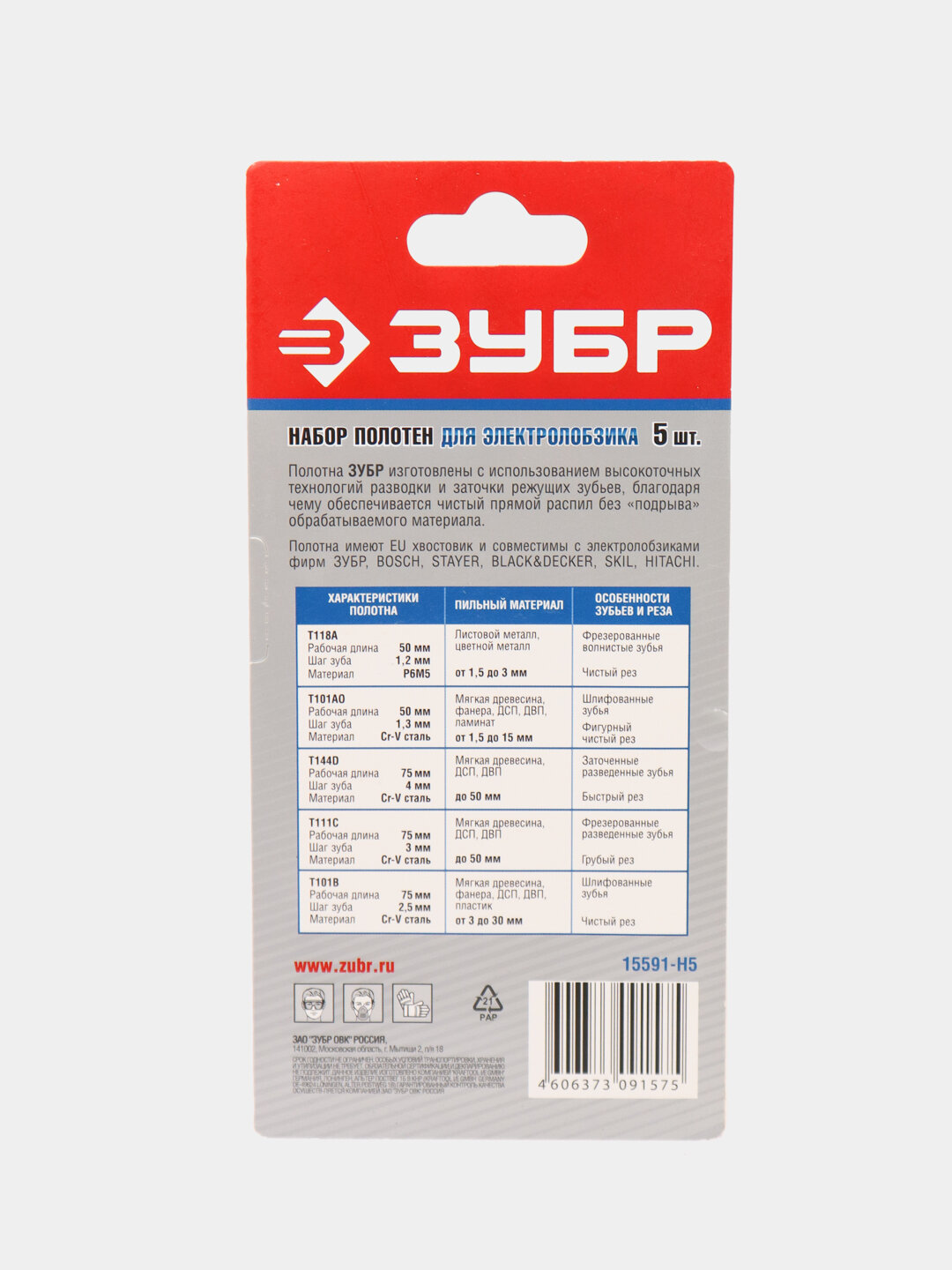 Набор пилок Зубр Мастер для электролобзика по дереву и металлу 5 шт. 15591-H5