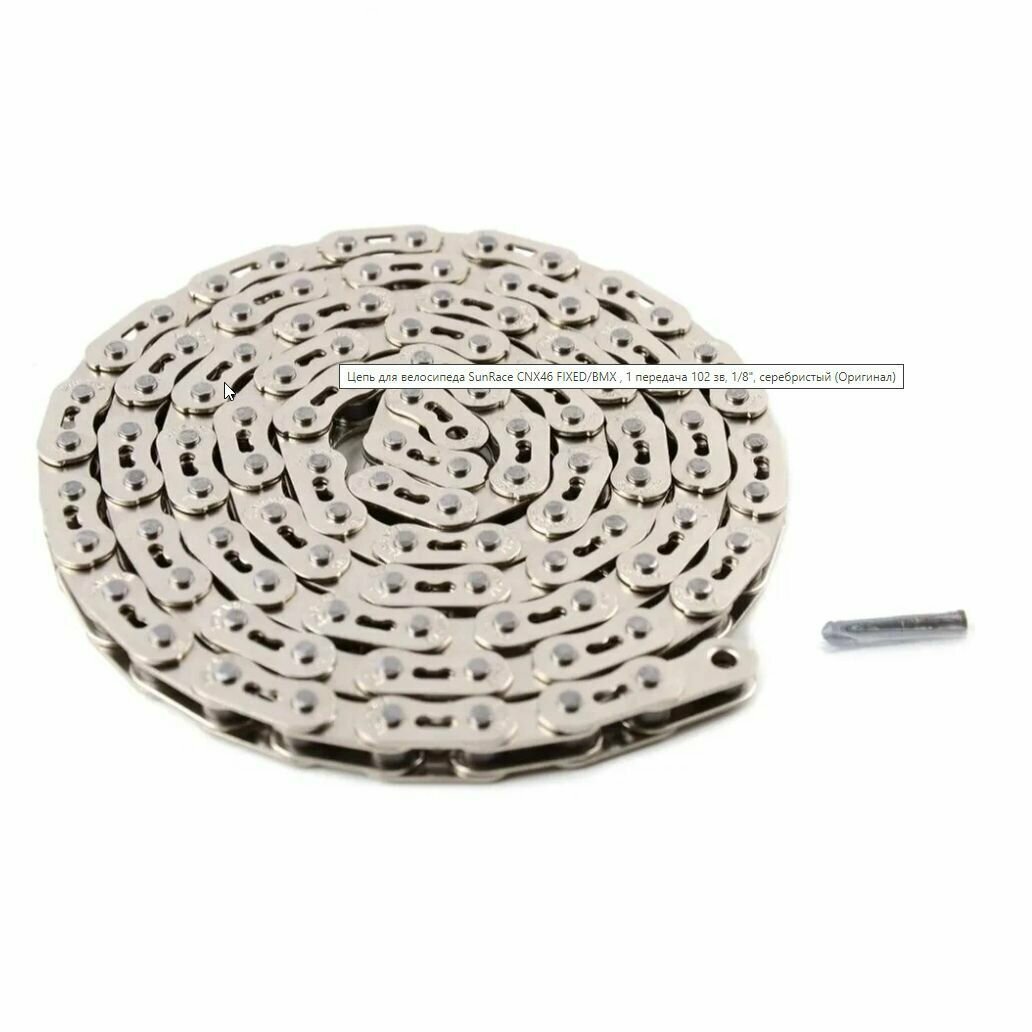 Цепь SunRace CNX 46 для FIXED, BMX, Track , 1 передача 102 зв, 1/2"x1/8", серебристый в упаковке интересное:
