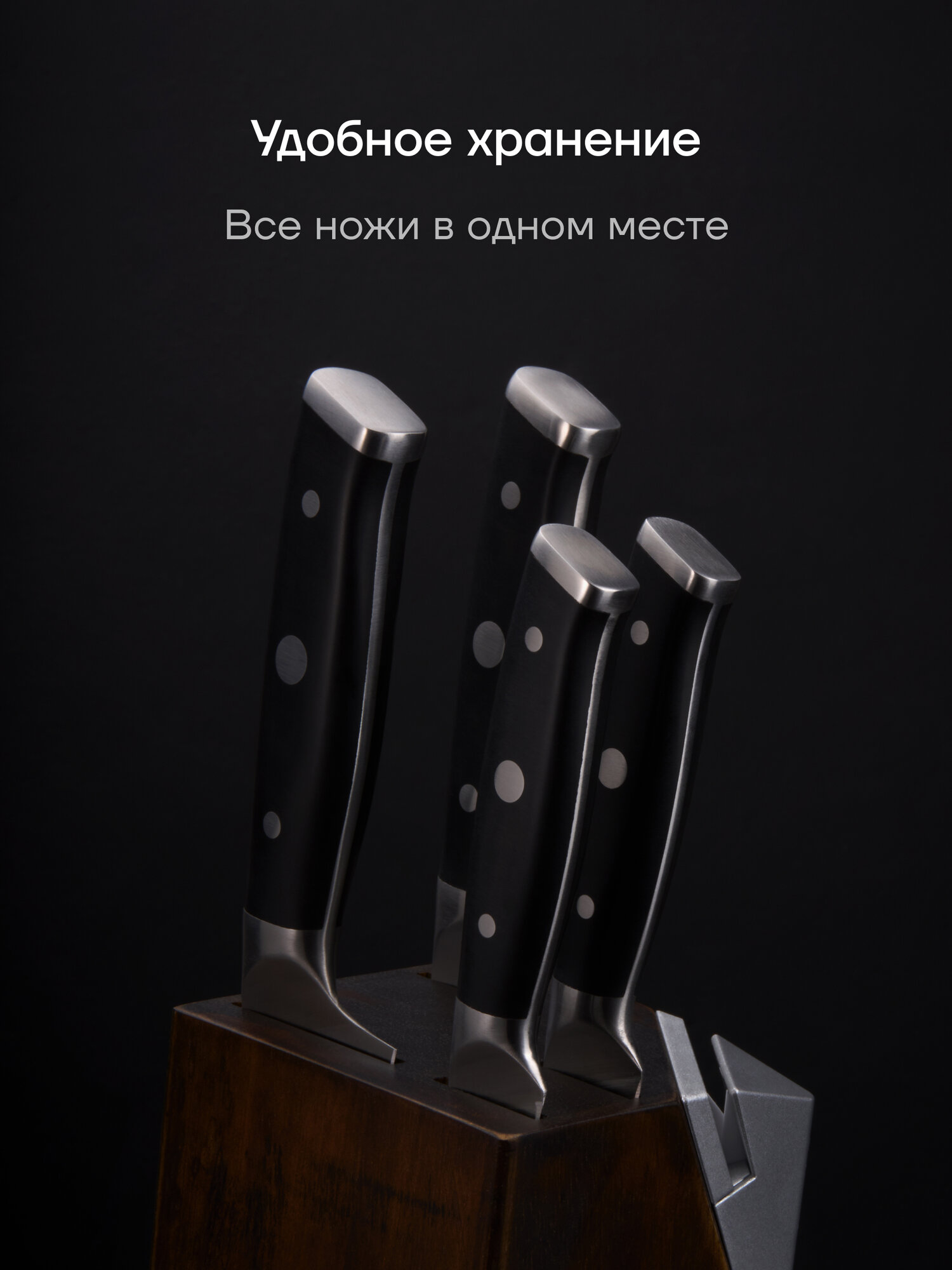 | Минусы: | Не нашёл других вариаций комплектов ножей в магазине ( скорей минус магазину магнит ) |