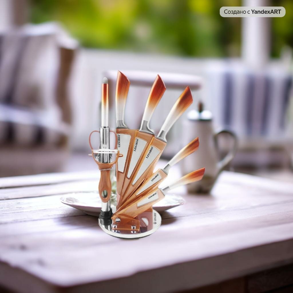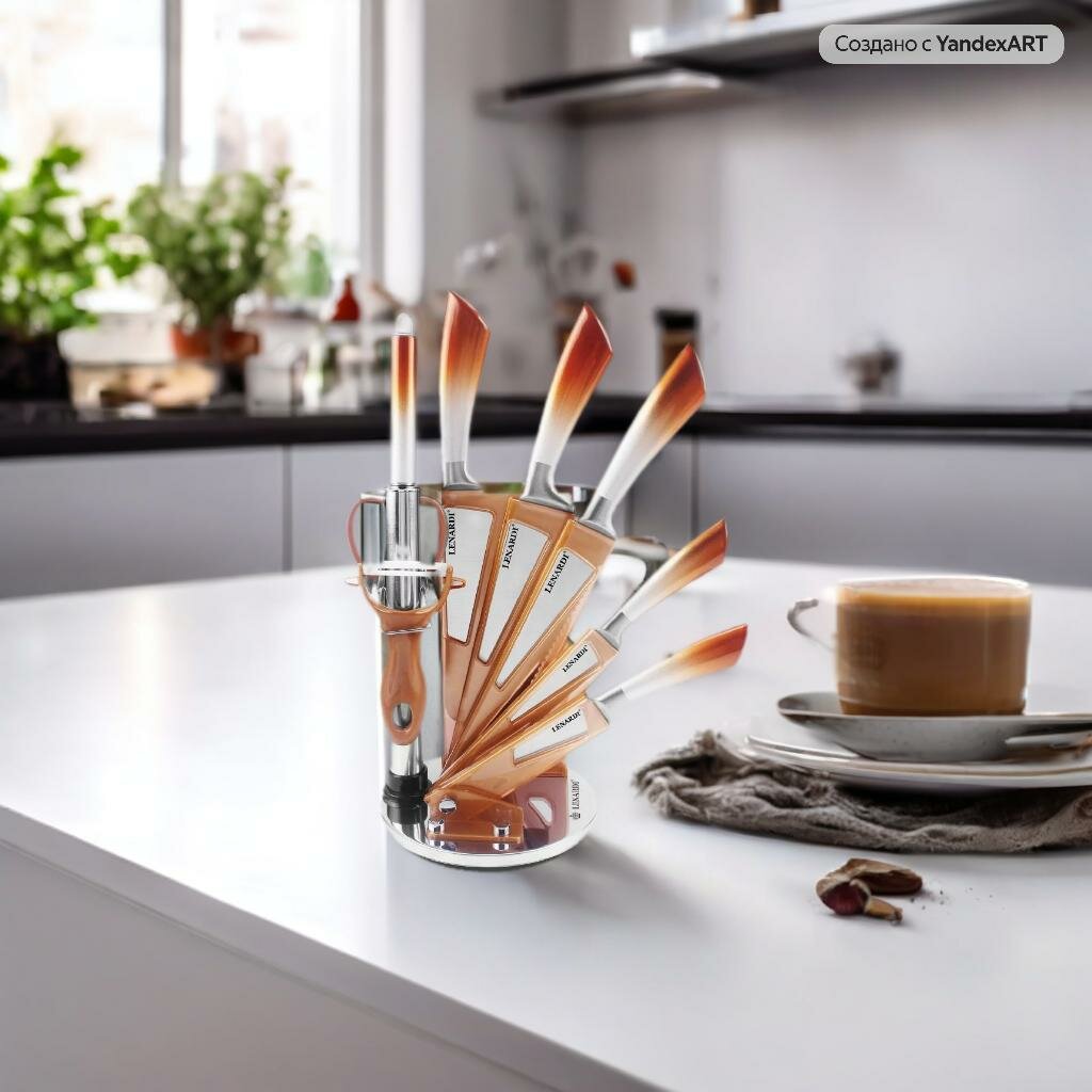 Набор ножей кухонных на подставке Lenardi 9 предметов (179493)