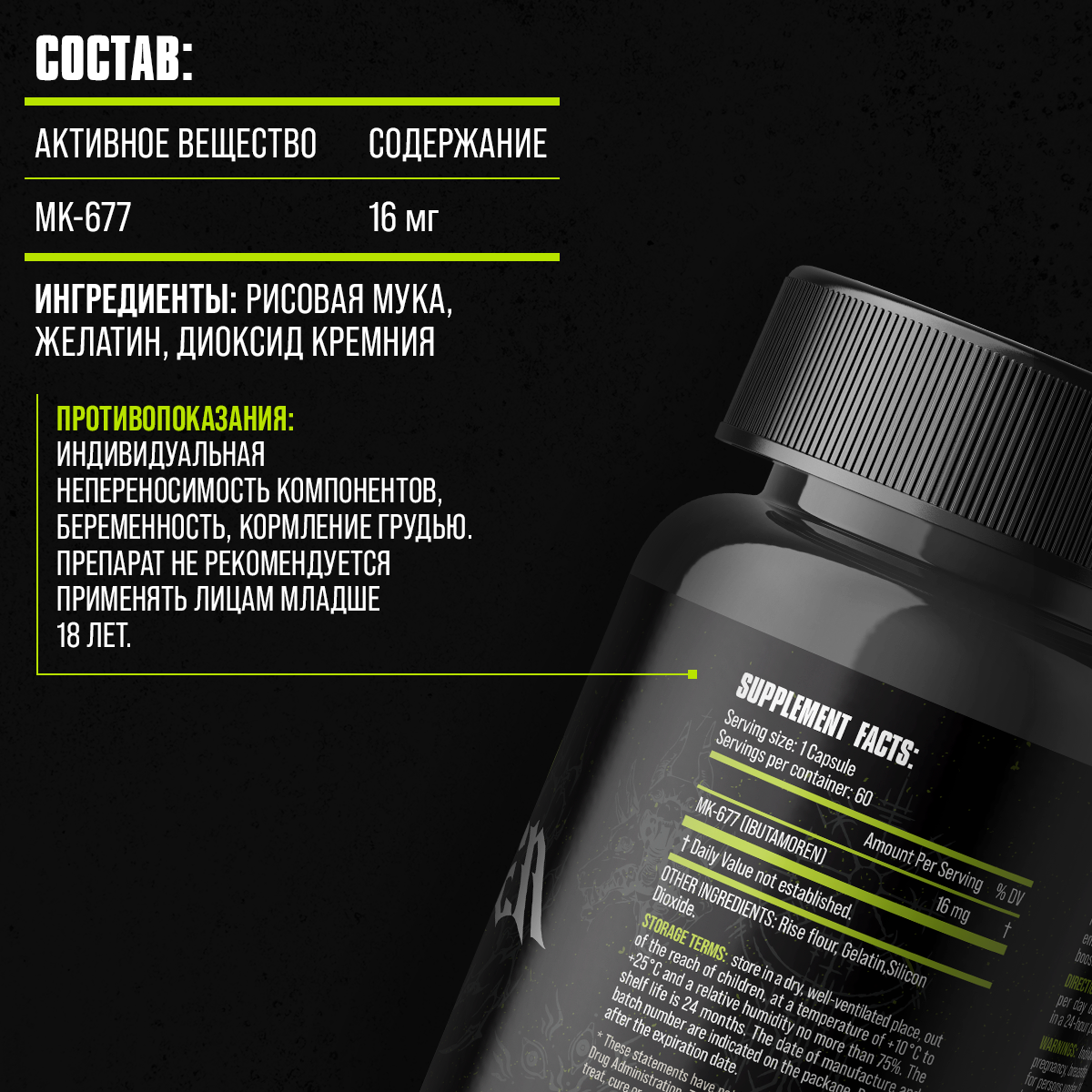 Бустер тестостерона ибутоморен МК-677 60 капсул, для набора мышечной массы интересное: