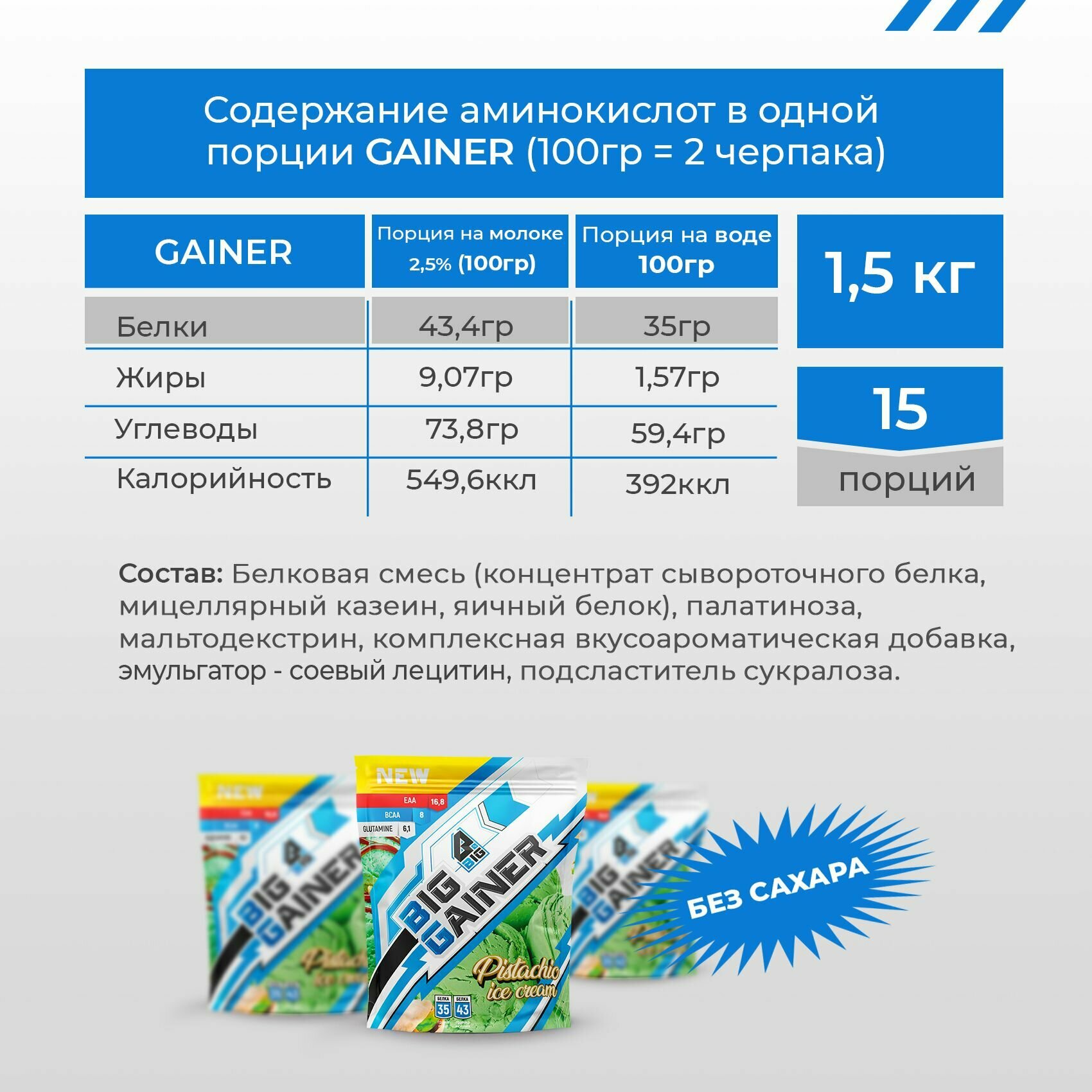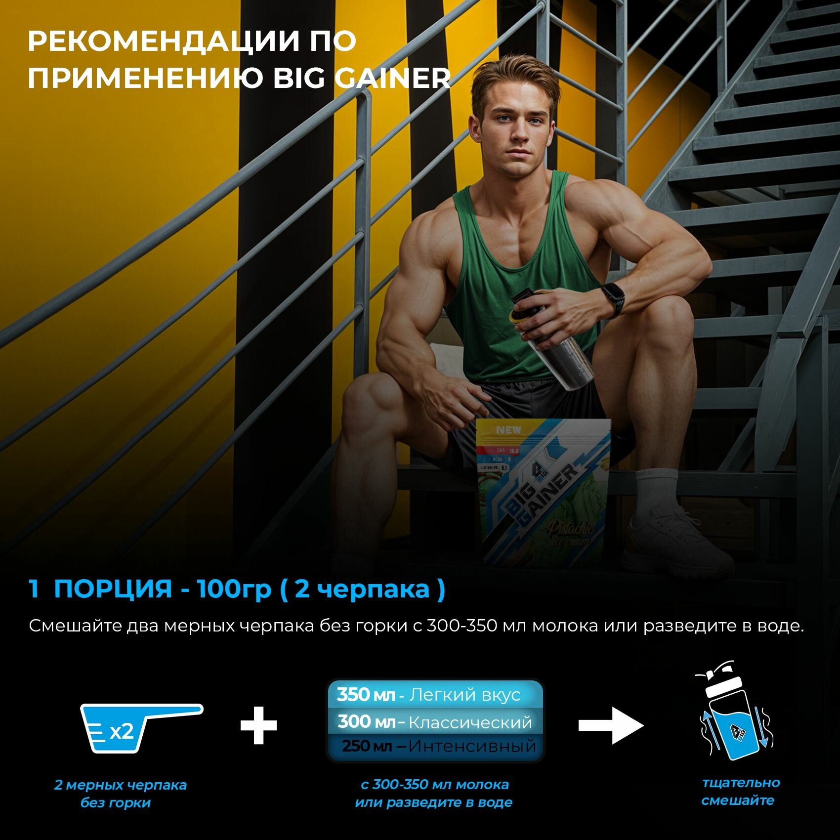 Гейнер BIGSNT BIG GAINER для набора мышечной массы высокобелковый, со вкусом Фисташковое мороженое / спортивное питание, 1.5 кг