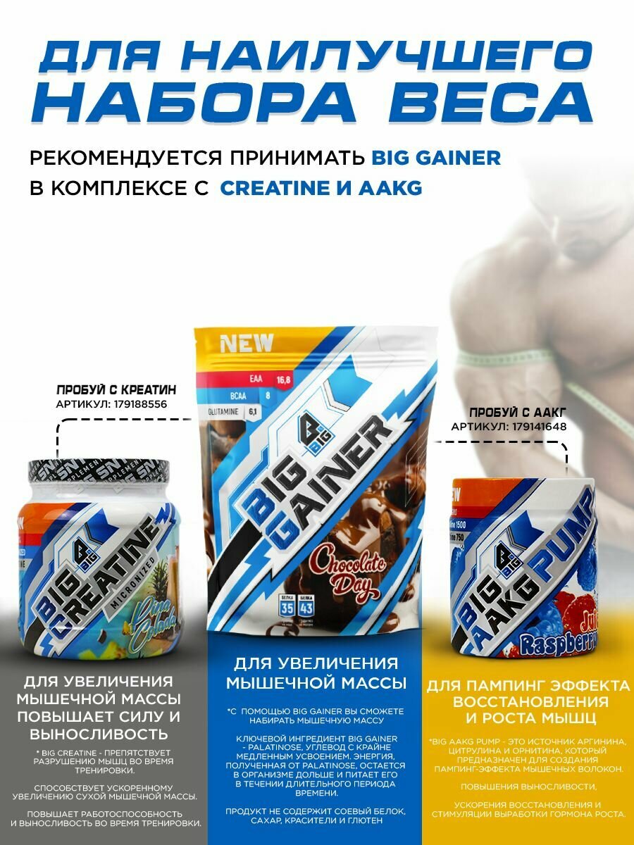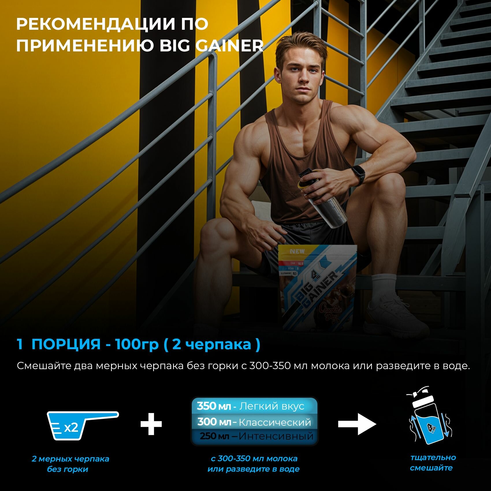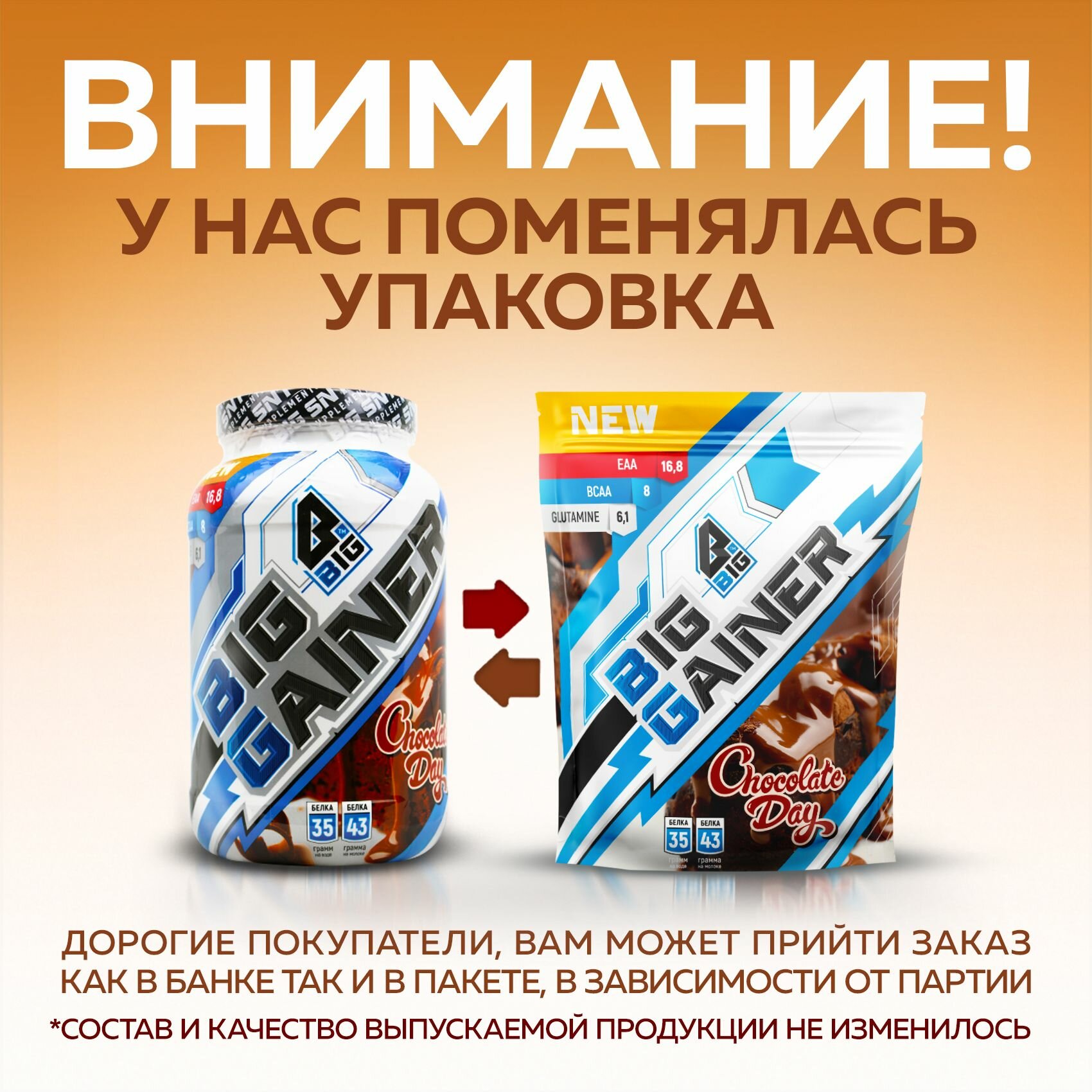 Гейнер BIGSNT BIG GAINER для набора мышечной массы высокобелковый, со вкусом шоколада / спортивное питание, 1.5 кг
