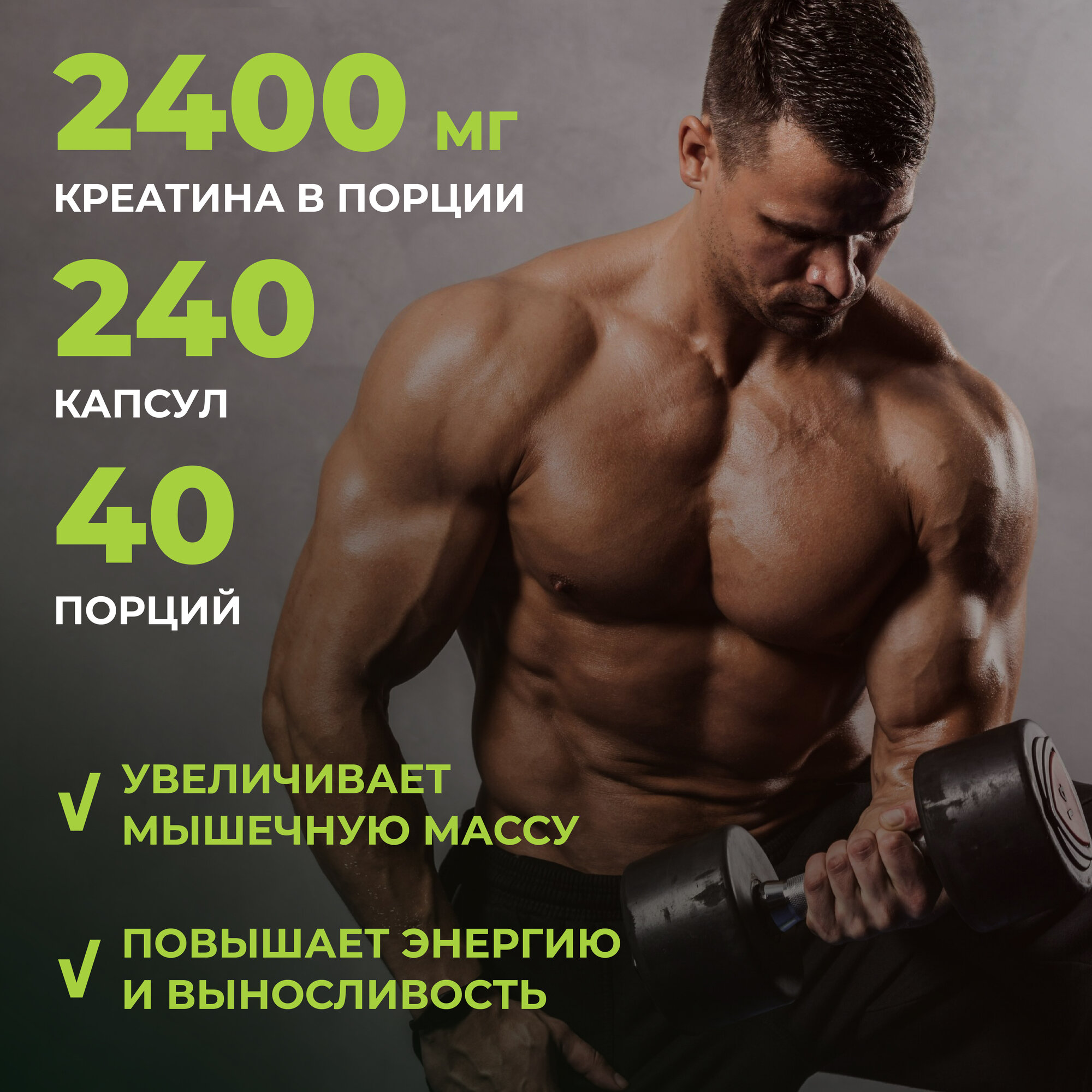 Креатин Моногидрат в Капсулах, 240 шт, спортивное питание аминокислоты, для набора массы тела