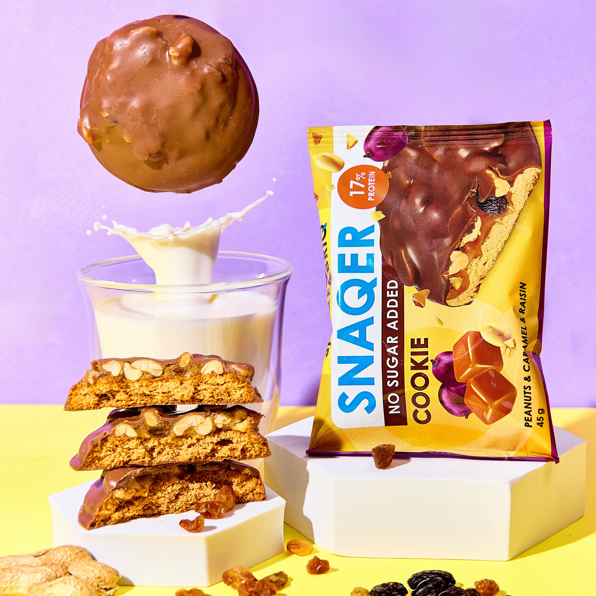 Купить SNAQ FABRIQ Протеиновое печенье в шоколаде SNAQER "Арахис, изюм и карамель", 10 шт х 45 г