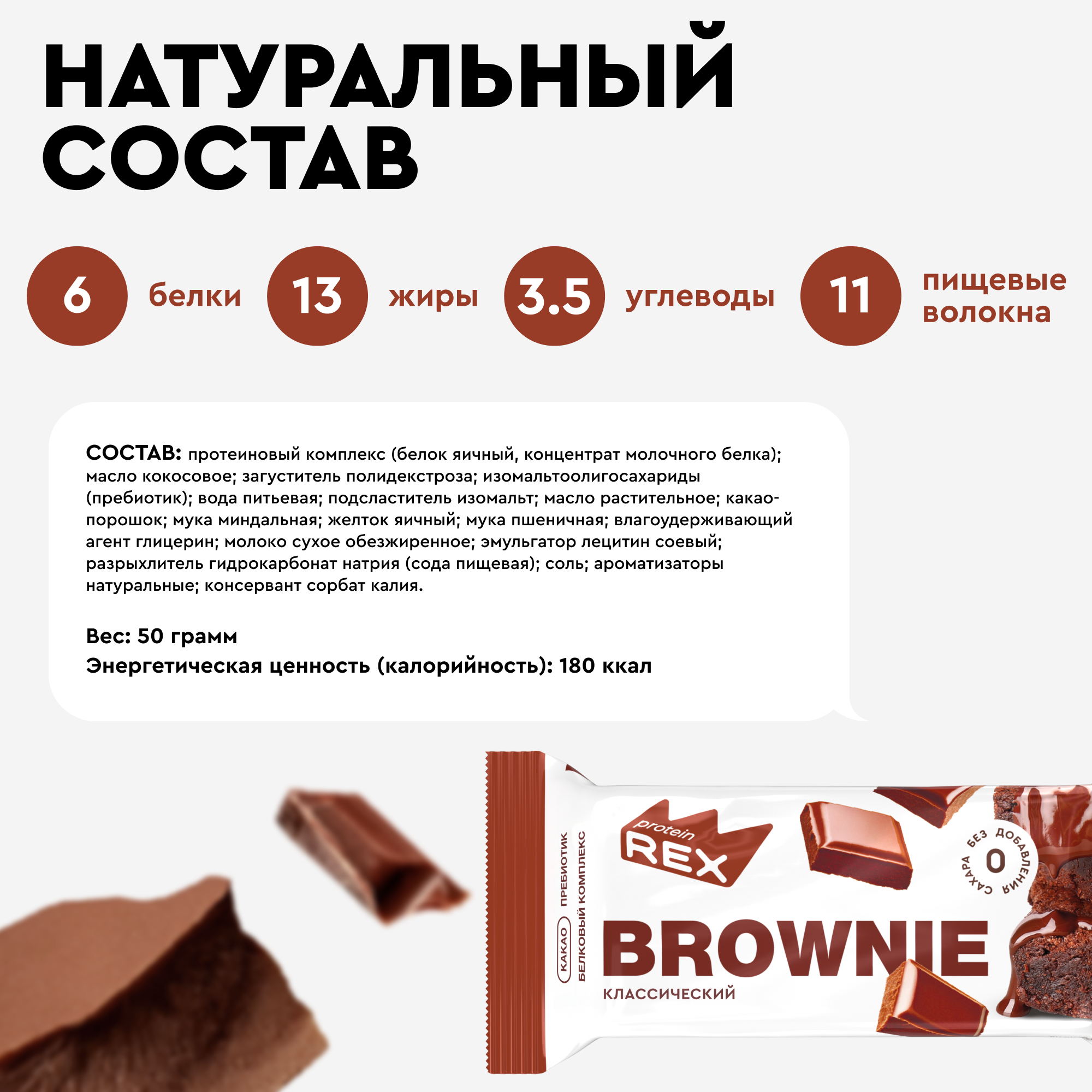 Пирожное протеиновое без сахара Брауни ProteinRex Шоколад 12 шт х 50 г, батончики, пирожное, десерты, ПП сладости для похудения