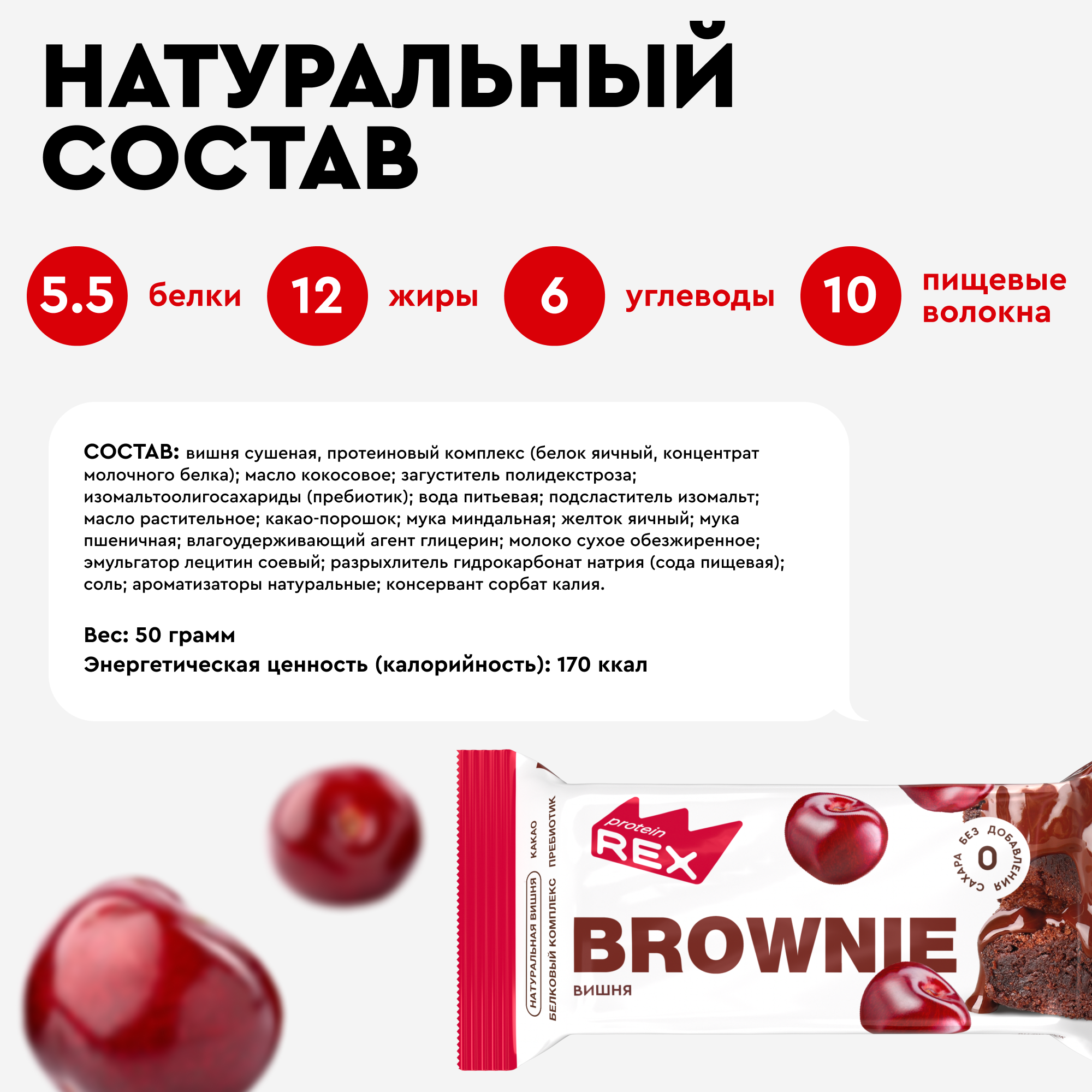 Протеиновое печенье без сахара Брауни ProteinRex Вишня 12 шт х 50 г, батончики, пирожное, десерты, ПП сладости для похудения