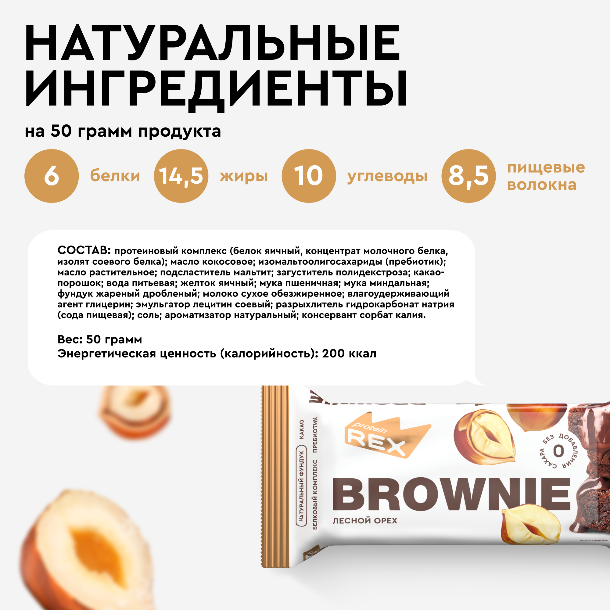СохранитьПротеиновое печенье без сахара Брауни ProteinRex Лесной Орех, батончики, пирожное, десерты интересное: