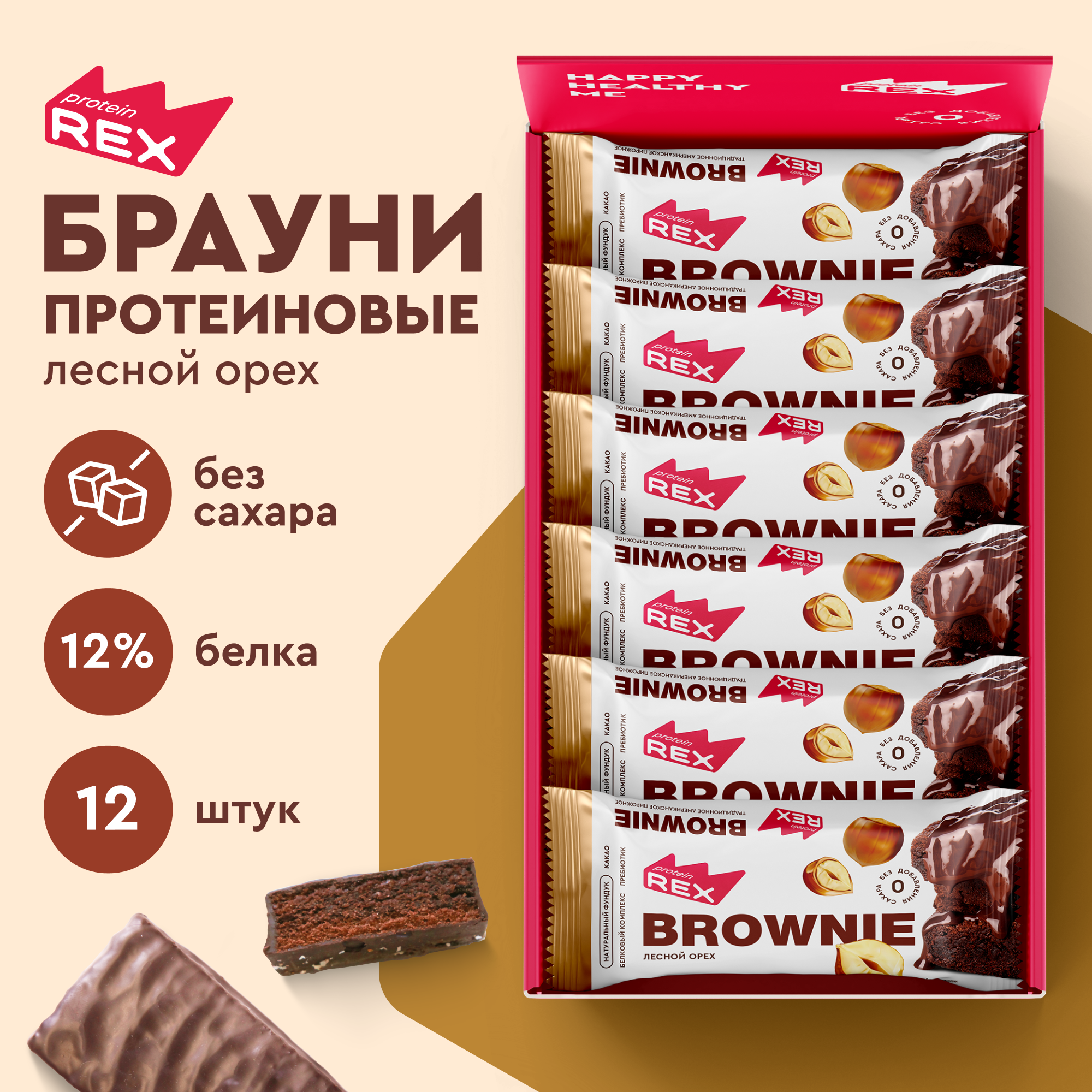 Купить Протеиновое печенье без сахара Брауни ProteinRex Лесной Орех, батончики, пирожное, десерты