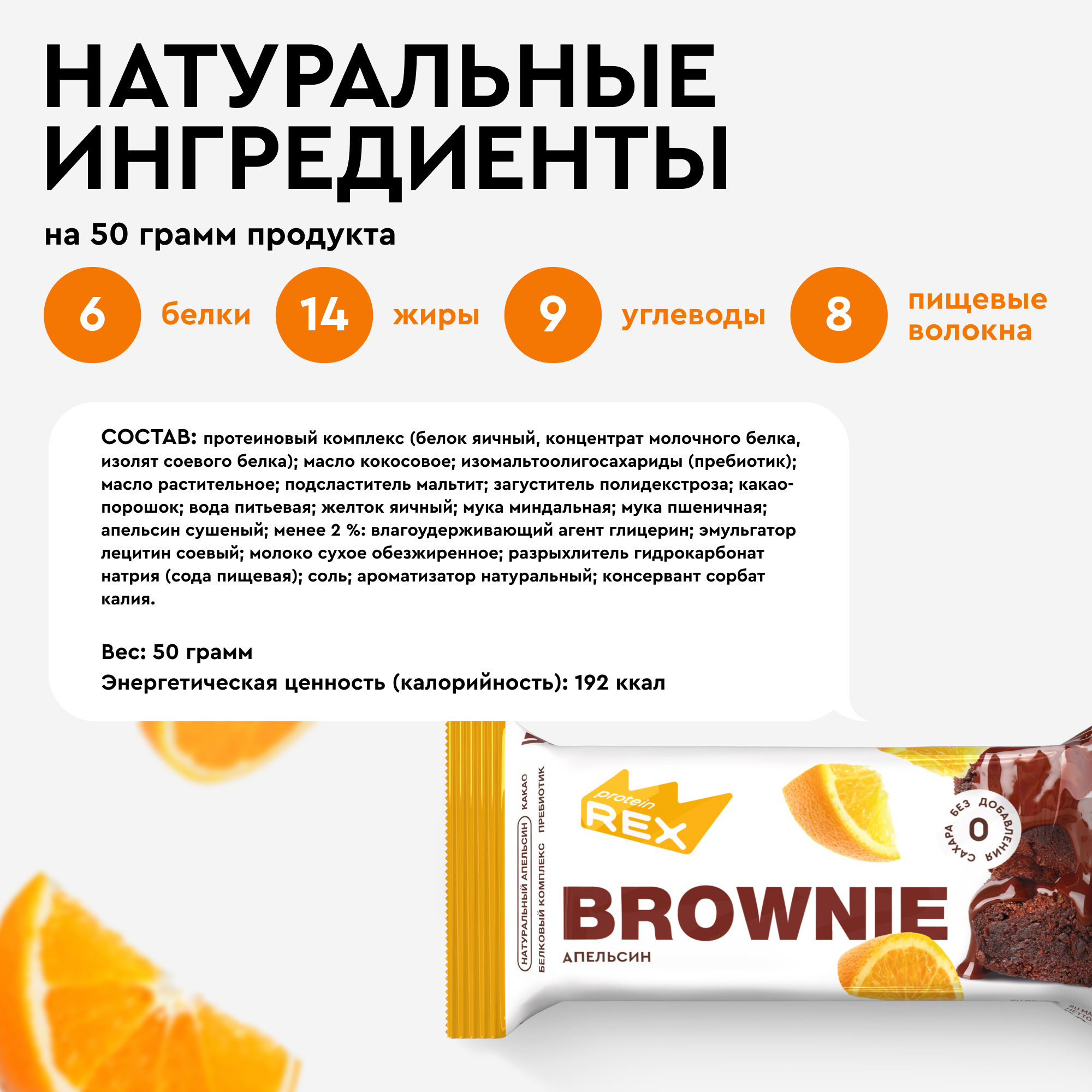 Печенье протеиновое без сахара Брауни ProteinRex Апельсин 8 шт х 50 г, спортпит