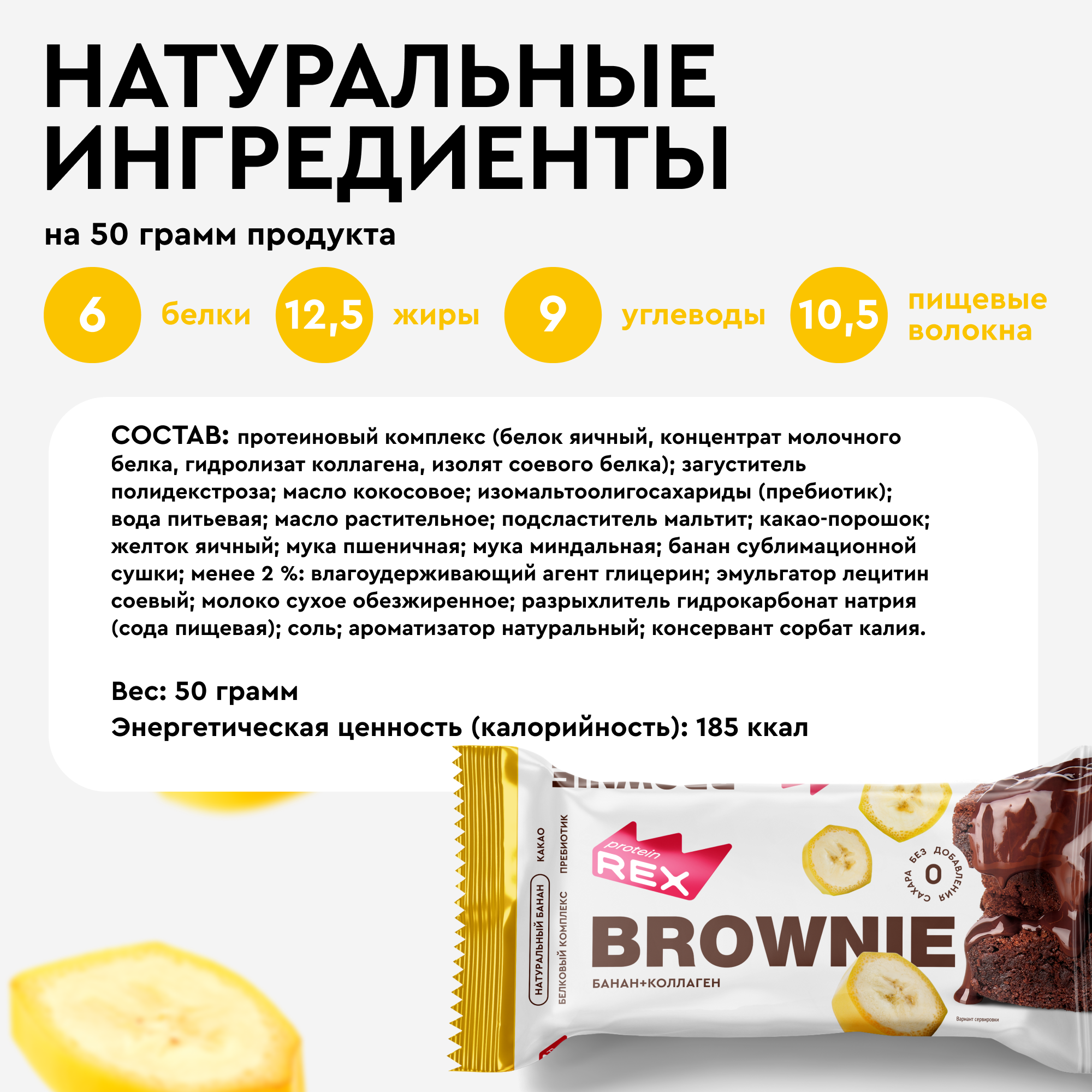 Печенье протеиновое без сахара Брауни ProteinRex Банан с коллагеном 8 шт х 50 г, спортпит