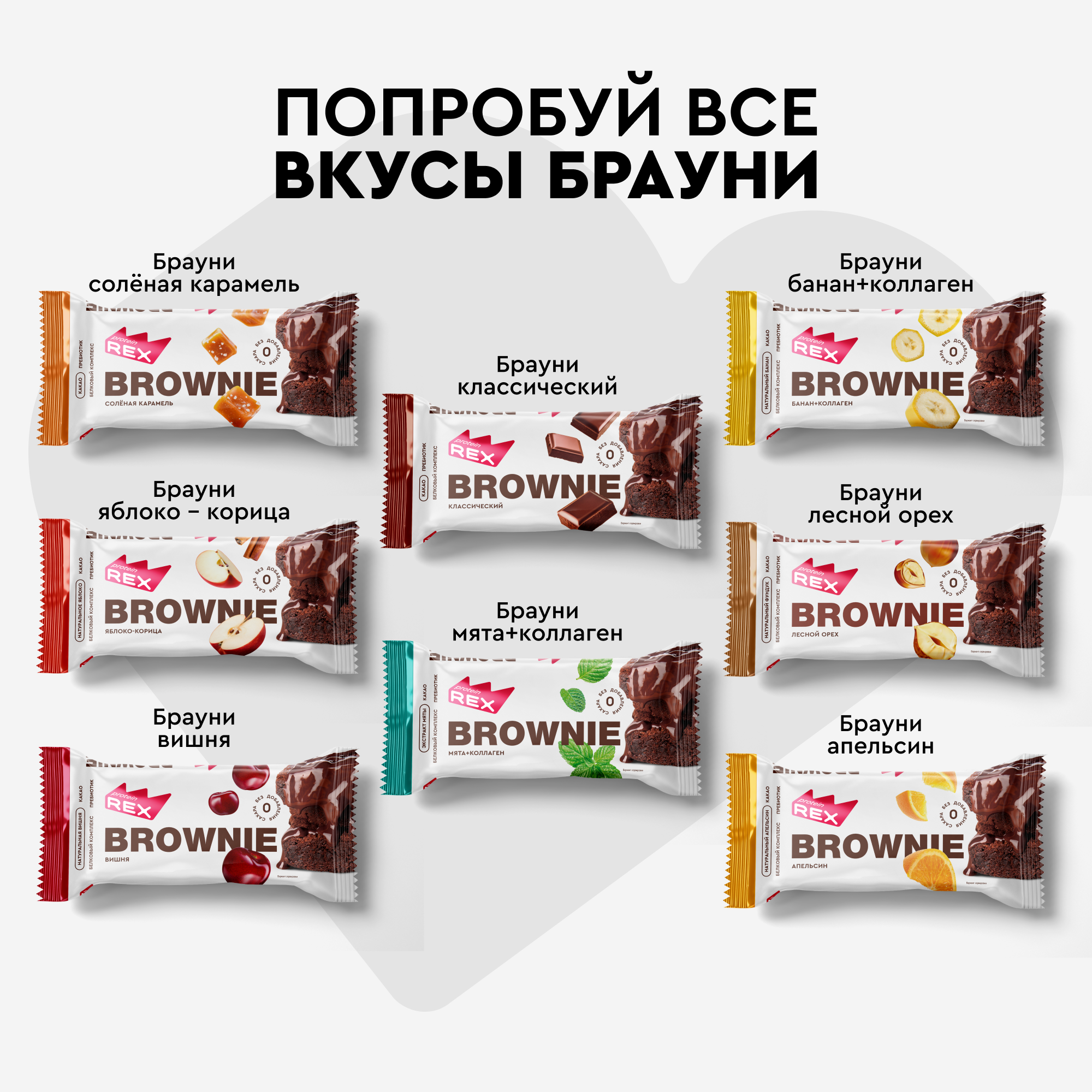 Протеиновое печенье без сахара Брауни ProteinRex Ассорти мини 5 шт х 50 г, 5 вкусов батончики