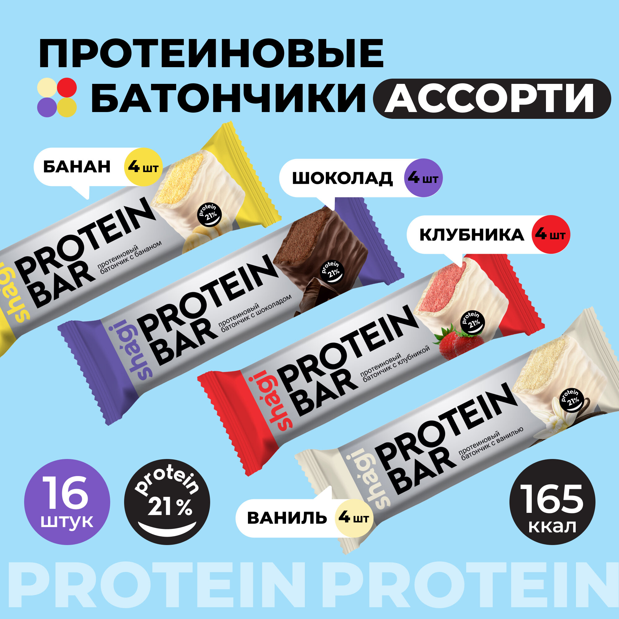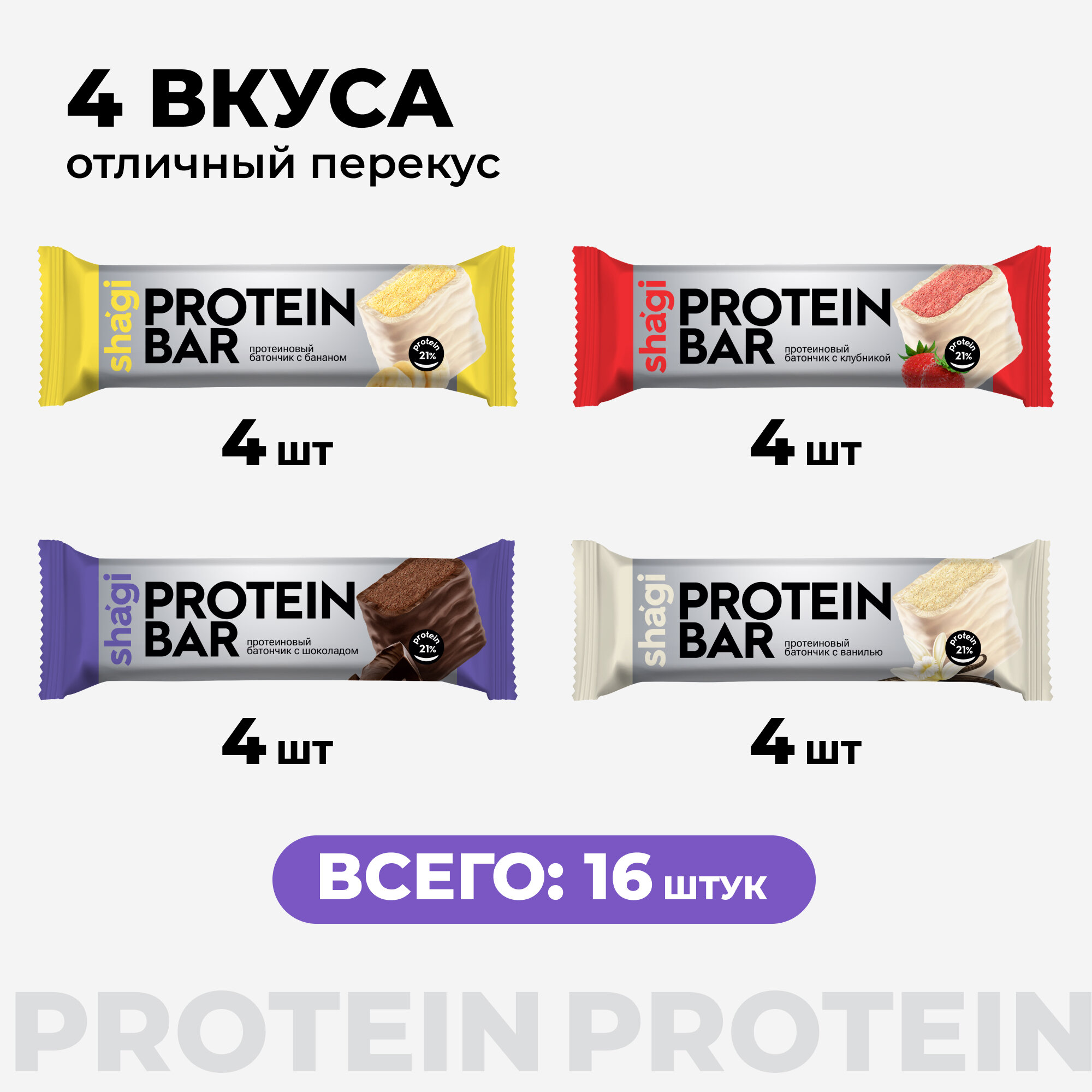 Купить Батончик протеиновый Shagi Ассорти, 40 гр х 16 шт, спортпит, пп