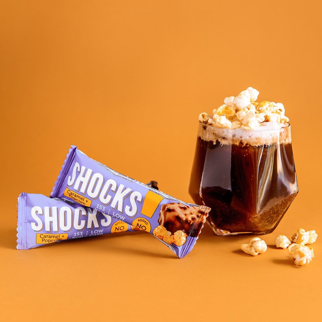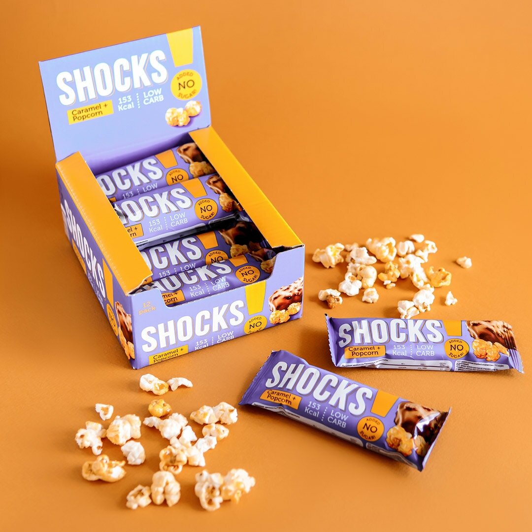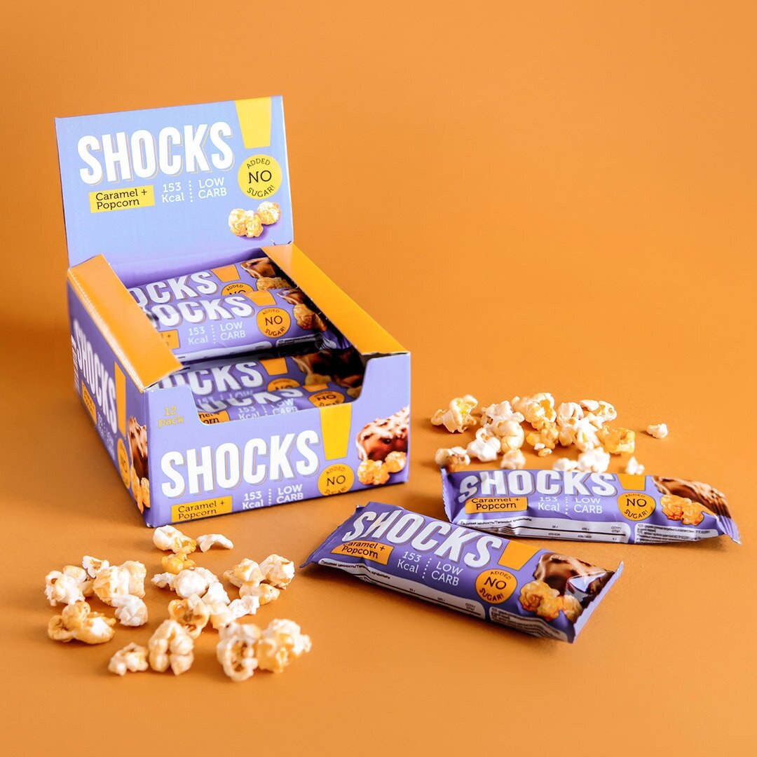 Батончики без сахара SHOCKS! Карамельный попкорн 35 г, 12 шт