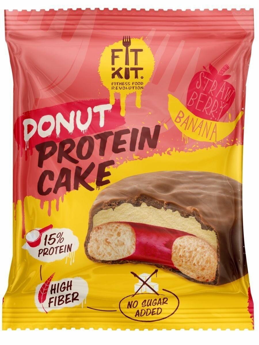 Купить FIT KIT Печенье Protein Donuts со вкусом клубники и банана, 4 штуки по 100 грамм