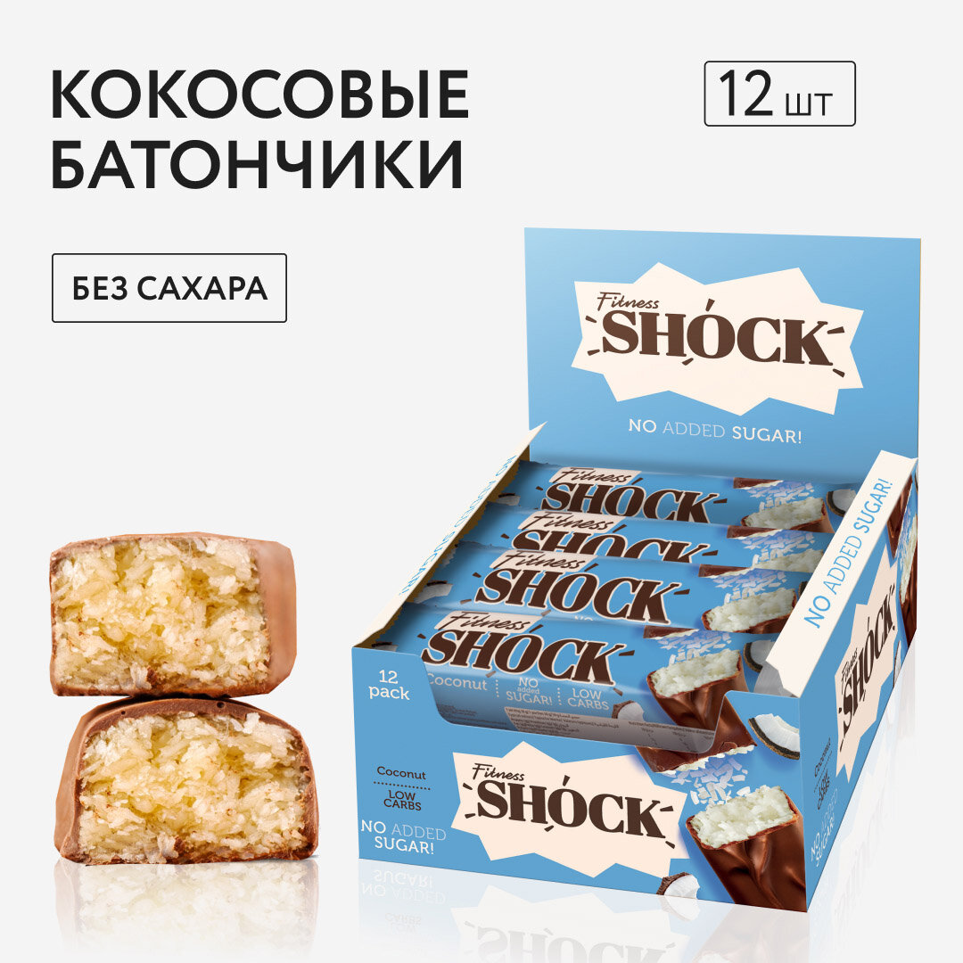 Купить Шоколадные батончики без сахара Кокос FitnesSHOCK 50 гр х 12 шт