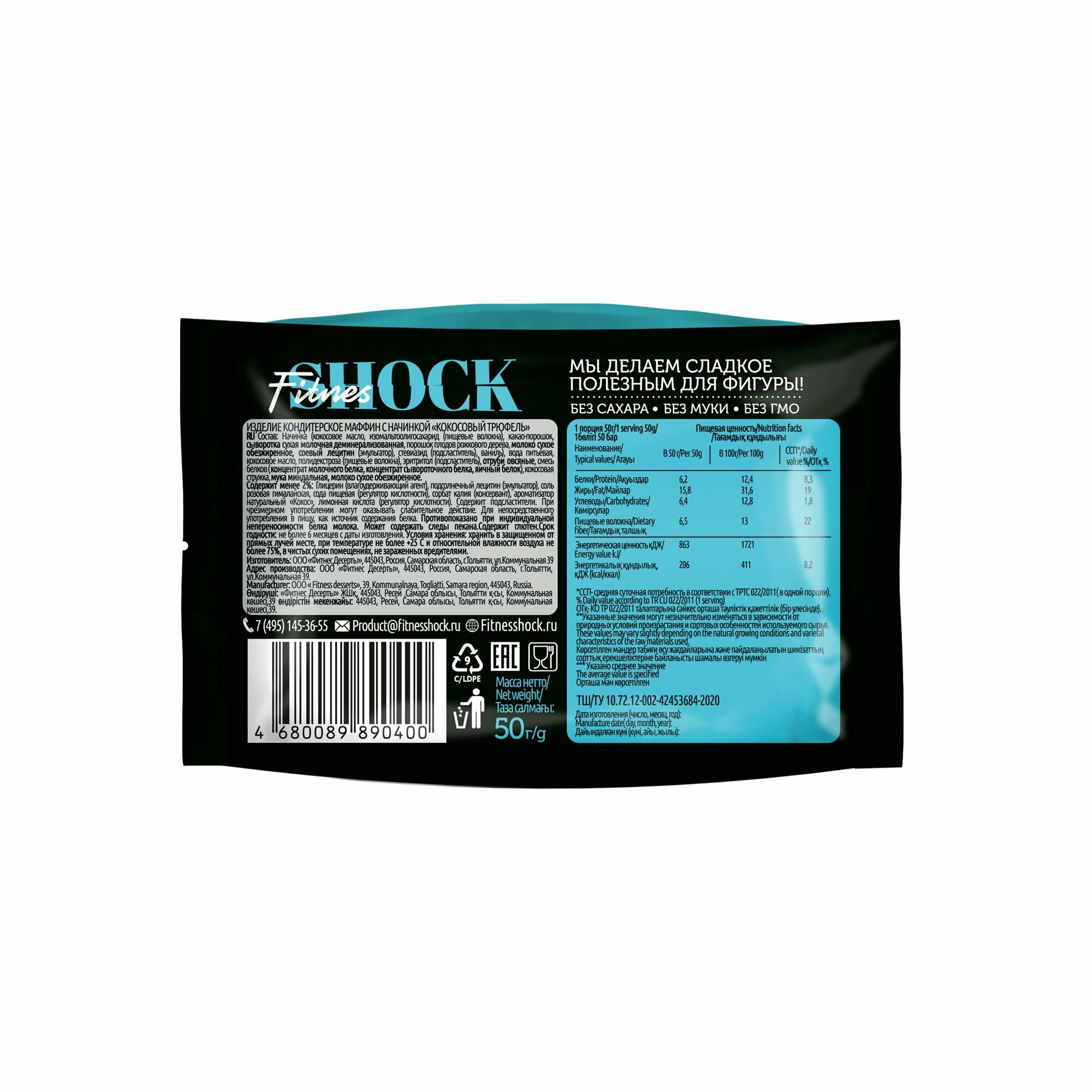 СохранитьМаффин с начинкой FitnesShock "Кокосовый трюфель 50 гр*10 шт интересное:
