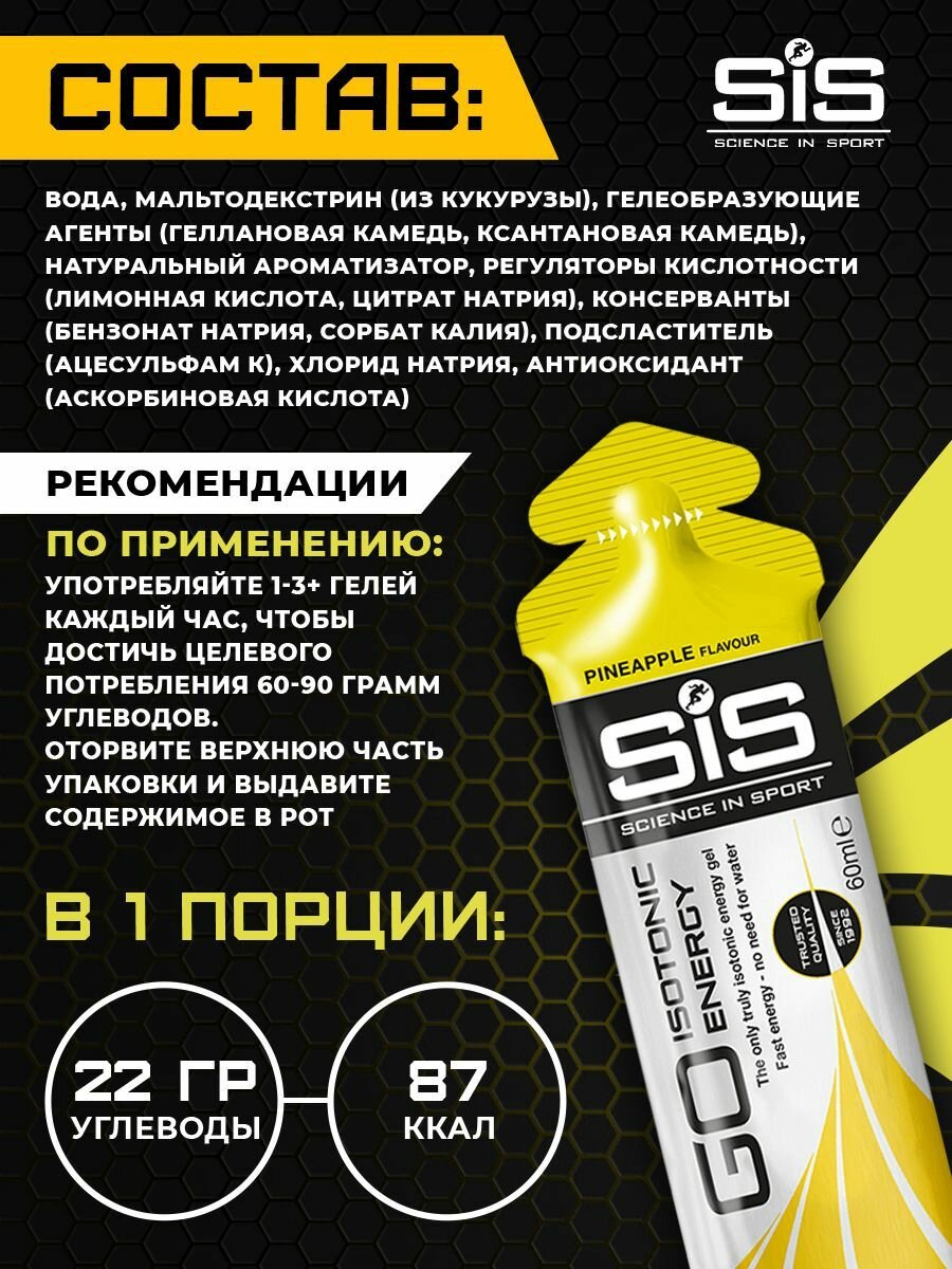 (30ШТ) SiS Go Energy Gel "Ананас" - энергетический гель с углеводами, изотоник для бега, 60мл