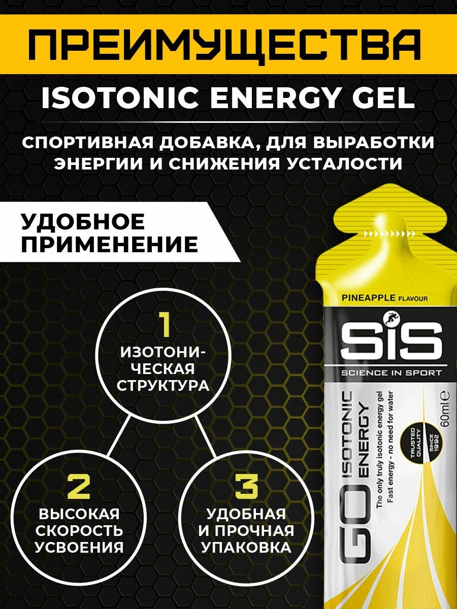 (3ШТ) SiS Go Energy Gel "Ананас" - энергетический гель с углеводами, изотоник для бега, 60мл