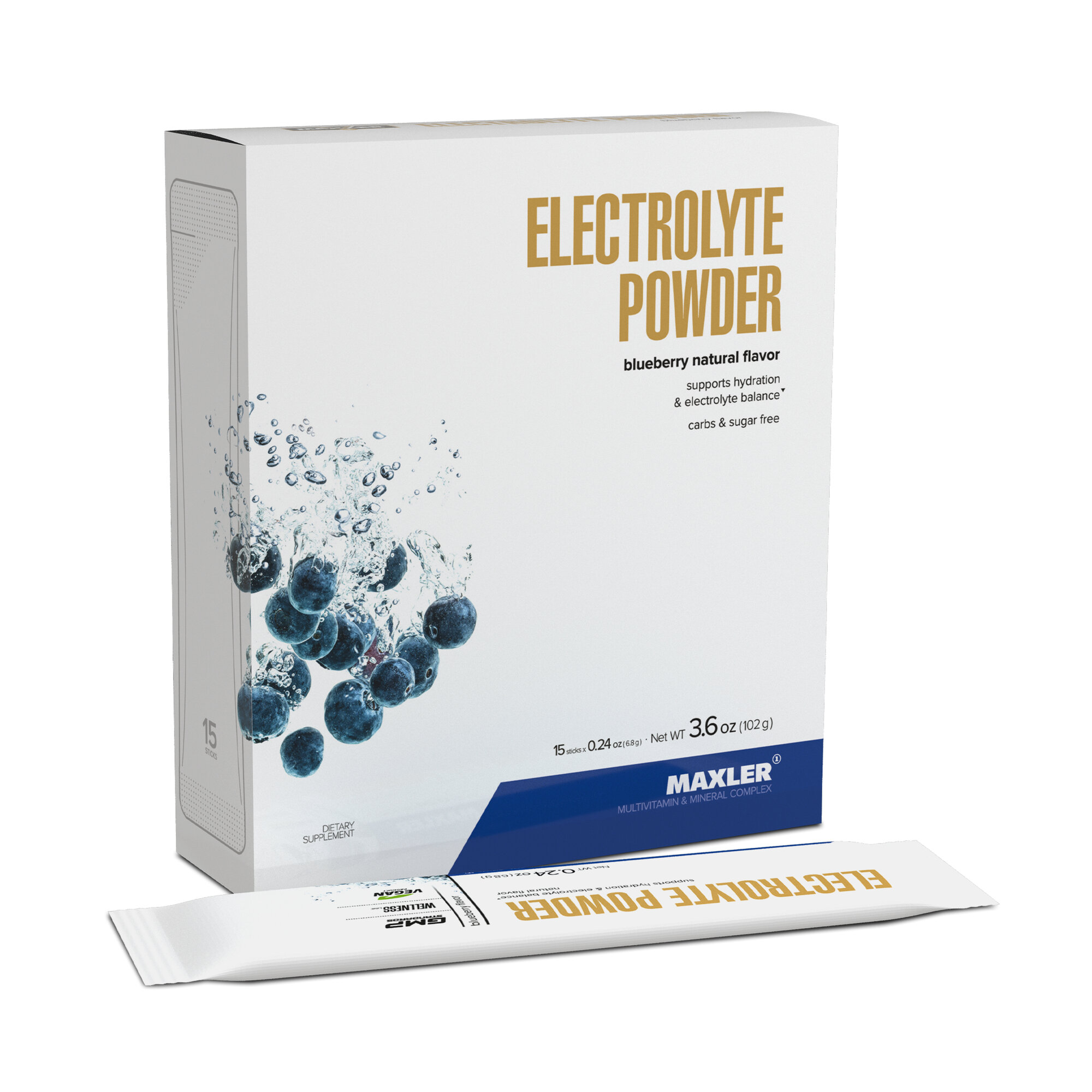 Купить Электролиты Maxler Electrolyte Powder - Черника, 15х6,8 г - Поддержка электролитного баланс - Комплекс микроэлементов