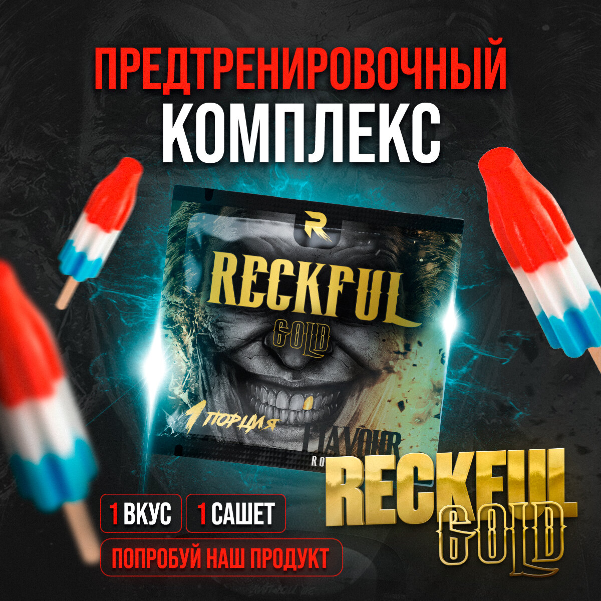 Предтренировочный комплекс RECKFUL Gold (Rocket Pop), 1 порция интересное: