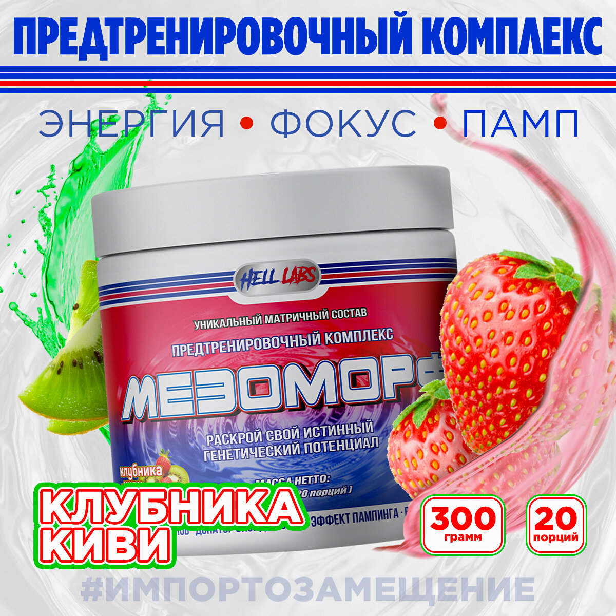 Предтренировочный комплекс Hell Labs Мезоморф, 300г, Клубника-Киви интересное: