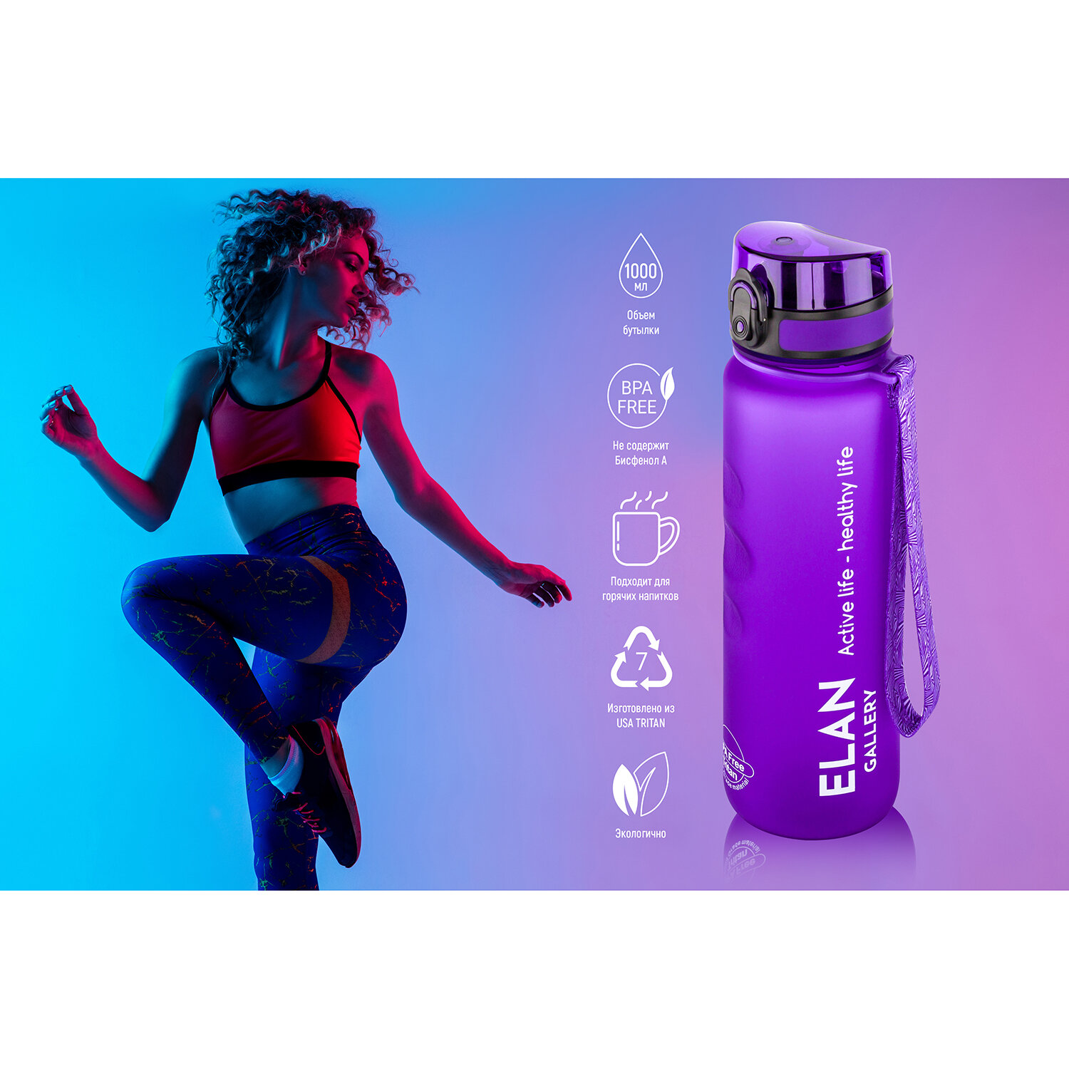 СохранитьБутылка для воды спортивная, для холодных и горячих напитков 1000 мл 7,8х7,8х28,5 см Elan Gallery Style Matte, лаванда интересное: