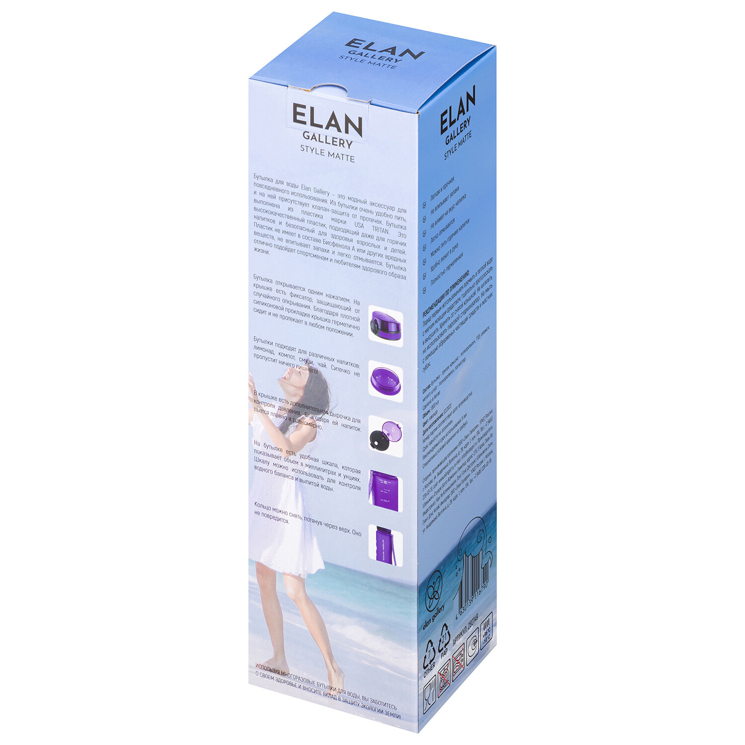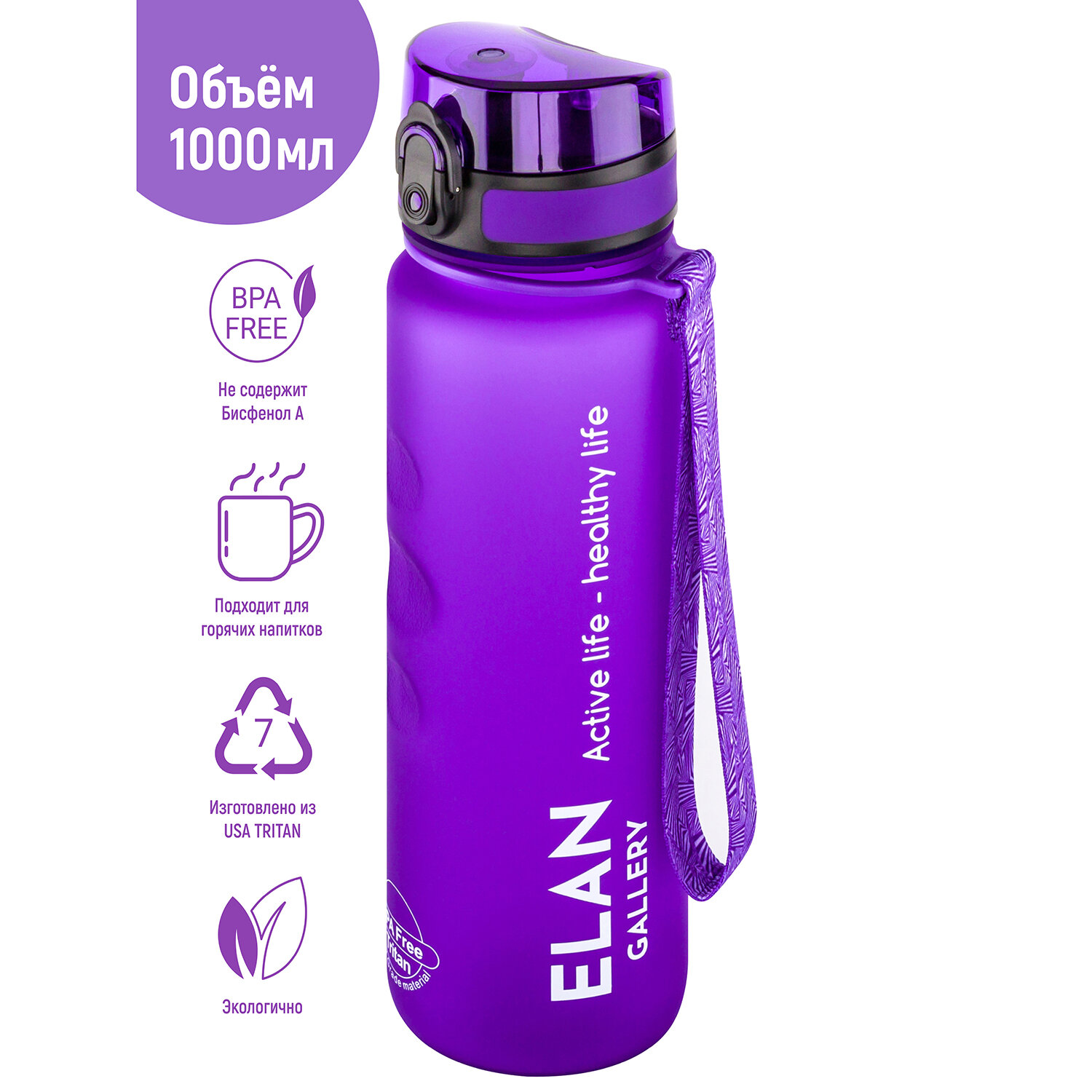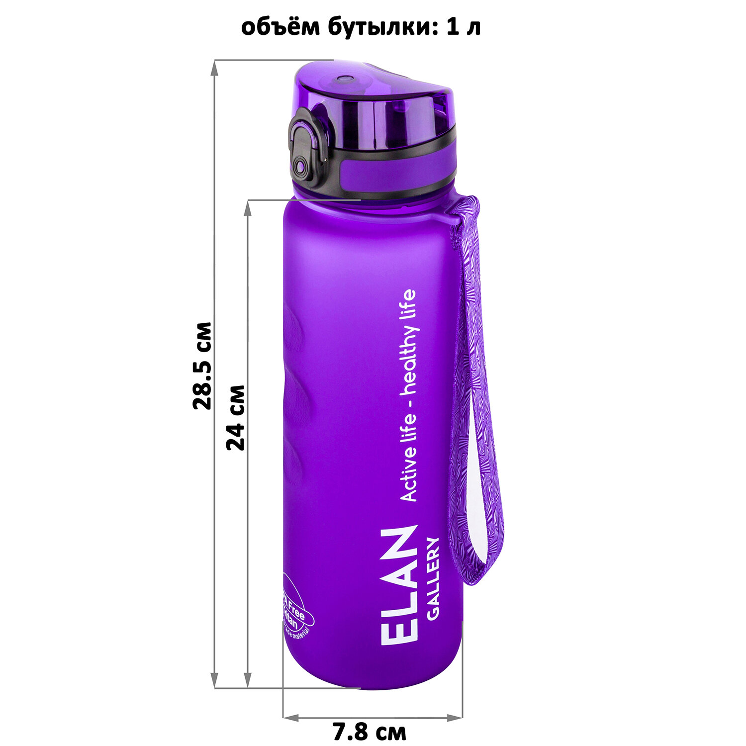 | Дополнительная информация | Бутылка для воды "Style Matte" лаванда 7,8х7,8х28,5 см 1000 мл, с углублениями д/пальцев, высота до крышки 24 см, с ситом, с защитным клапаном от протечек, кнопкой для открывания, поильником, с ремешком для переноски, с мерной шкалой, полипропиленне рекомендуется применять абразивные моющие средства. Не рекомендуется использовать в микроволновой печи и ПММ; не содержит бисфенол А |