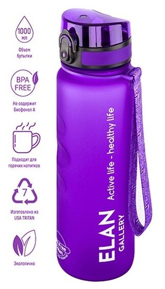 Бутылка для воды Elan Gallery Style Matte, с углублениями для пальцев, лаванда, 1000 мл