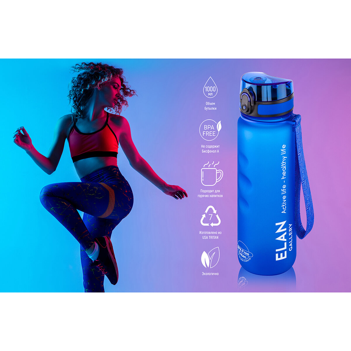 СохранитьБутылка для воды спортивная, для холодных и горячих напитков 1000 мл 7,8х7,8х28,5 см Elan Gallery Style Matte, небесная интересное: